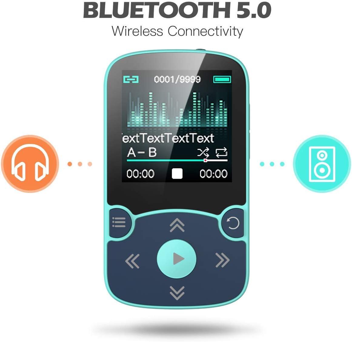 【Bluetooth 5.0 Technology 】 AGPTEK MP3 player adopts upgraded Bluetooth 5.0 has better compatibility, stable signal and reduces the power consumption of the music player. You can pair the Bluetooth MP3 Player with your Bluetooth wireless headphones (Tips:Unable to connect to cellphone and car via Bluetooth,you could use Audio Line to connect)