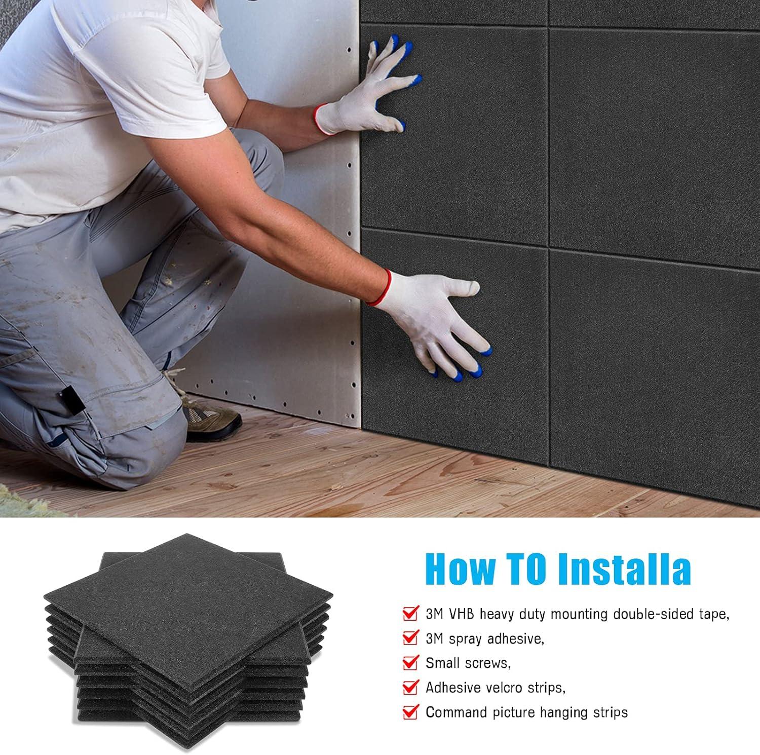 ◆ EASY INSTALLATION: Both general-purpose spraying adhesive and double sticky tape are acceptable. All you have to do is stick the spraying adhesive or 3M double sided tape (NOT INCLUDED) to the back of each acoustic panel and then just adhere it to the right position.