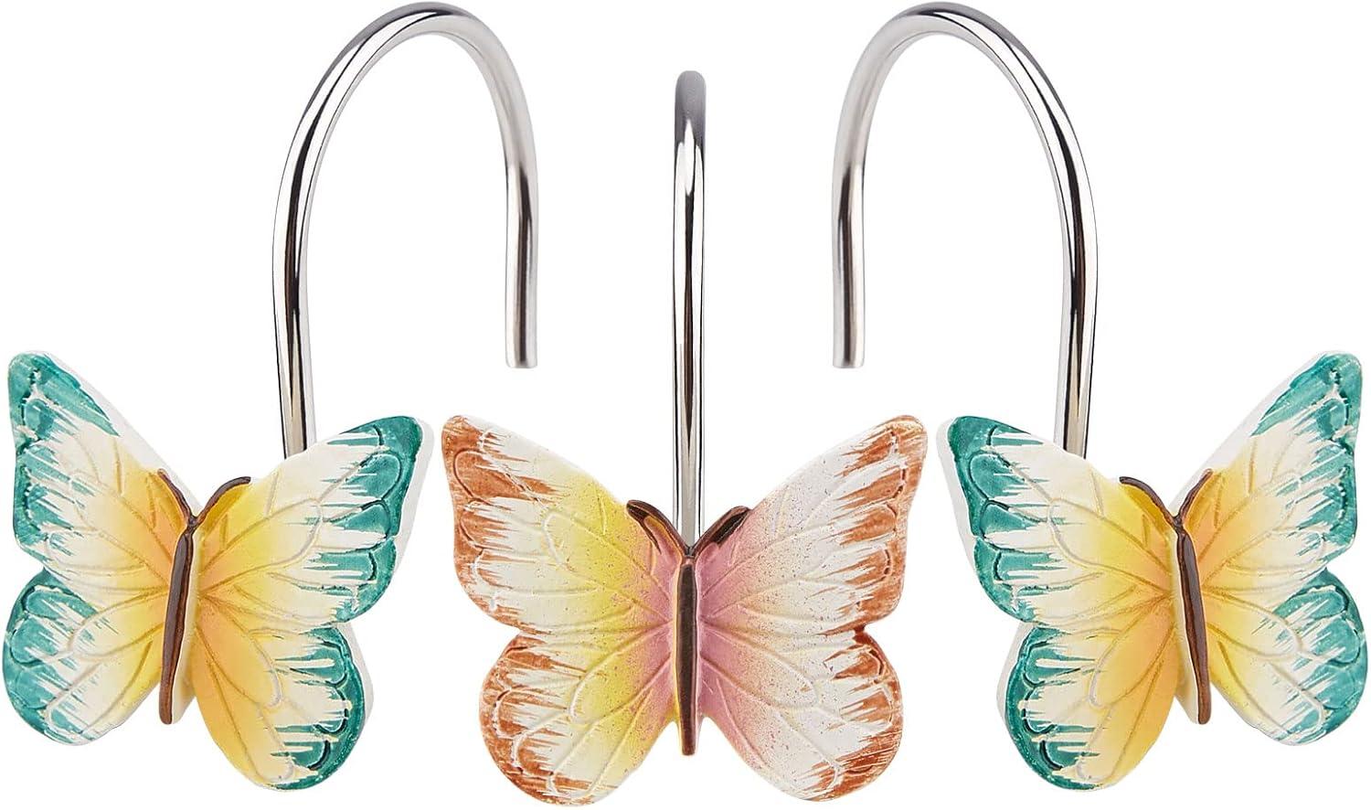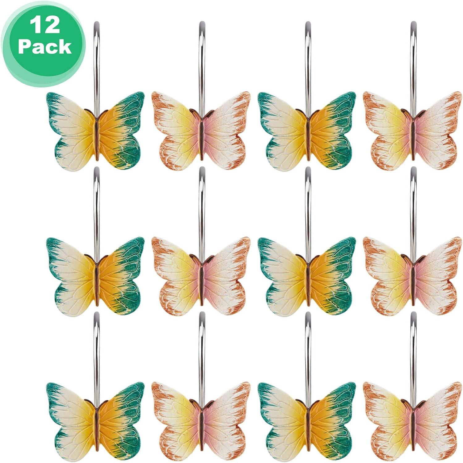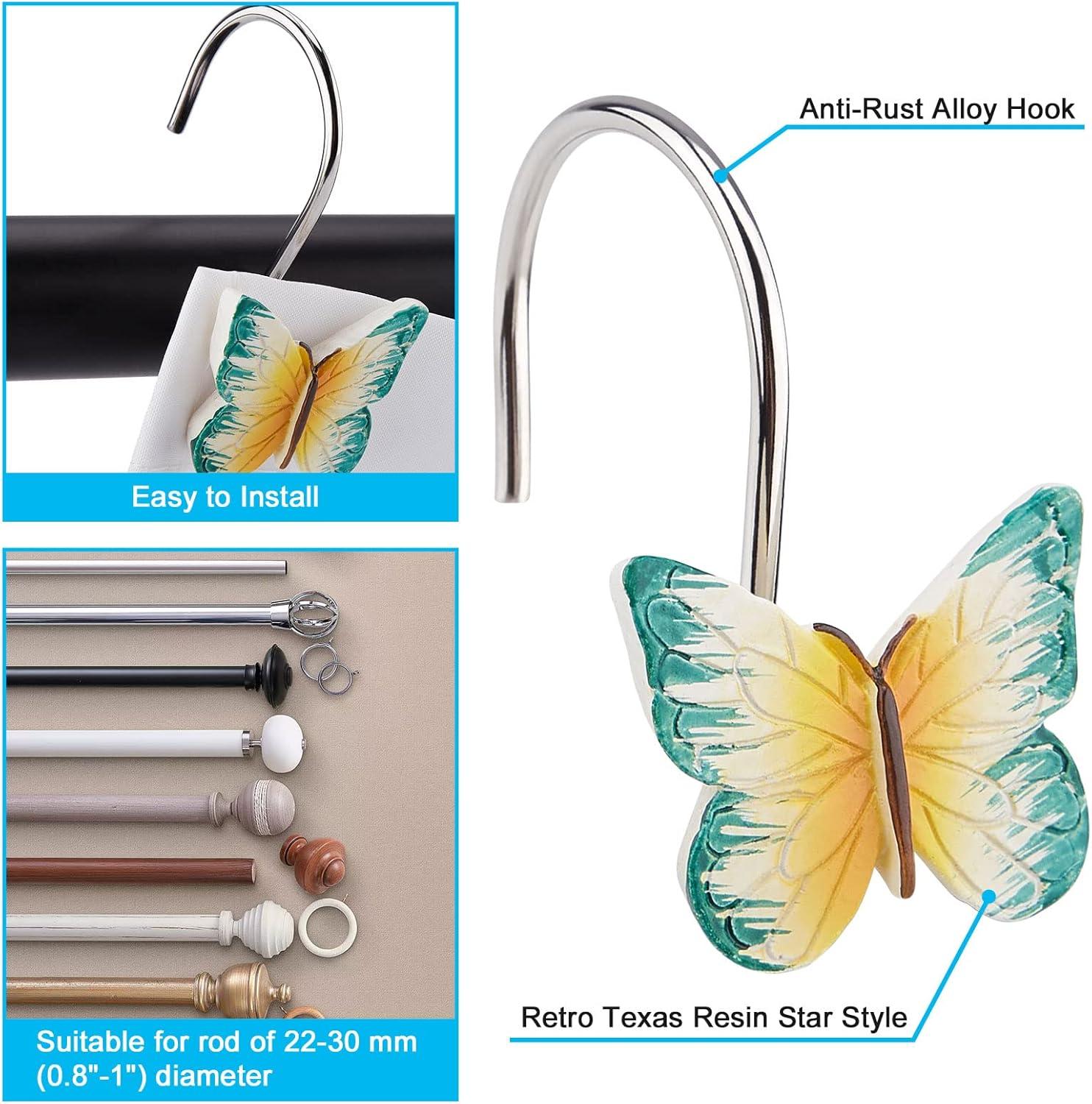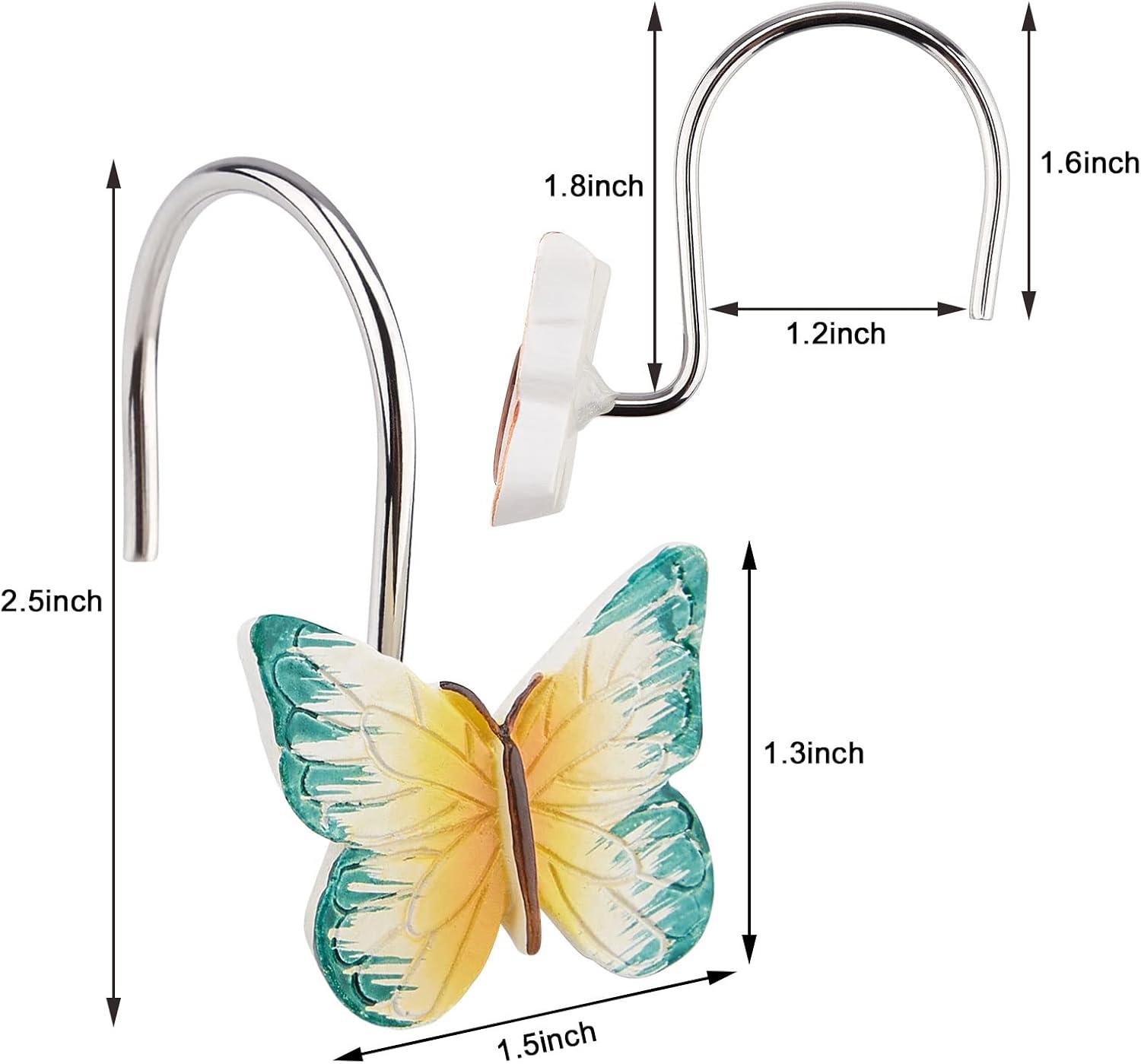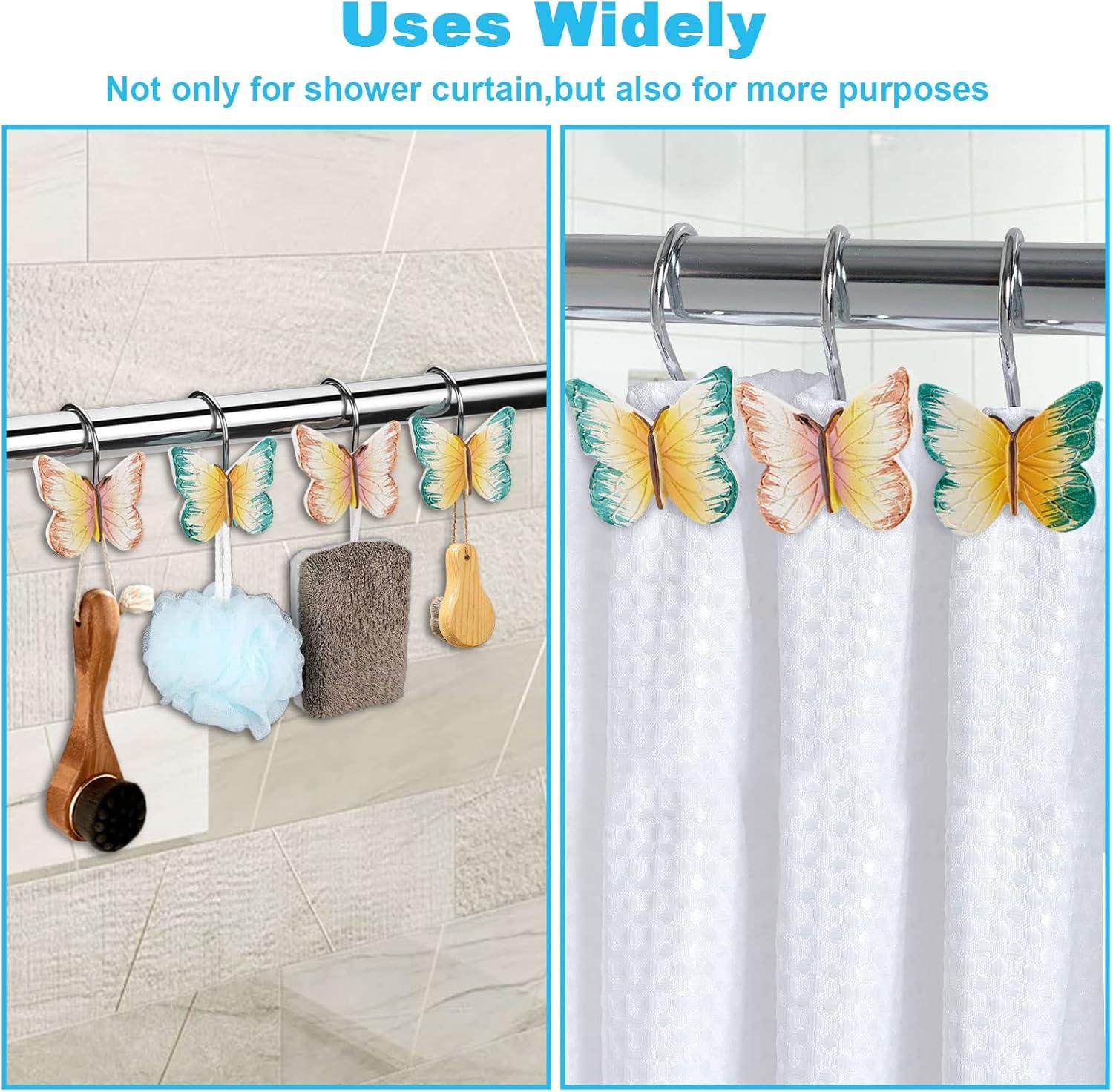 ♦ Set of 12 PCS Shower Curtain Hooks — This package includes 12 pcs shower curtain hooks, Anti-rust alloy hook and Acrylic butterfly.