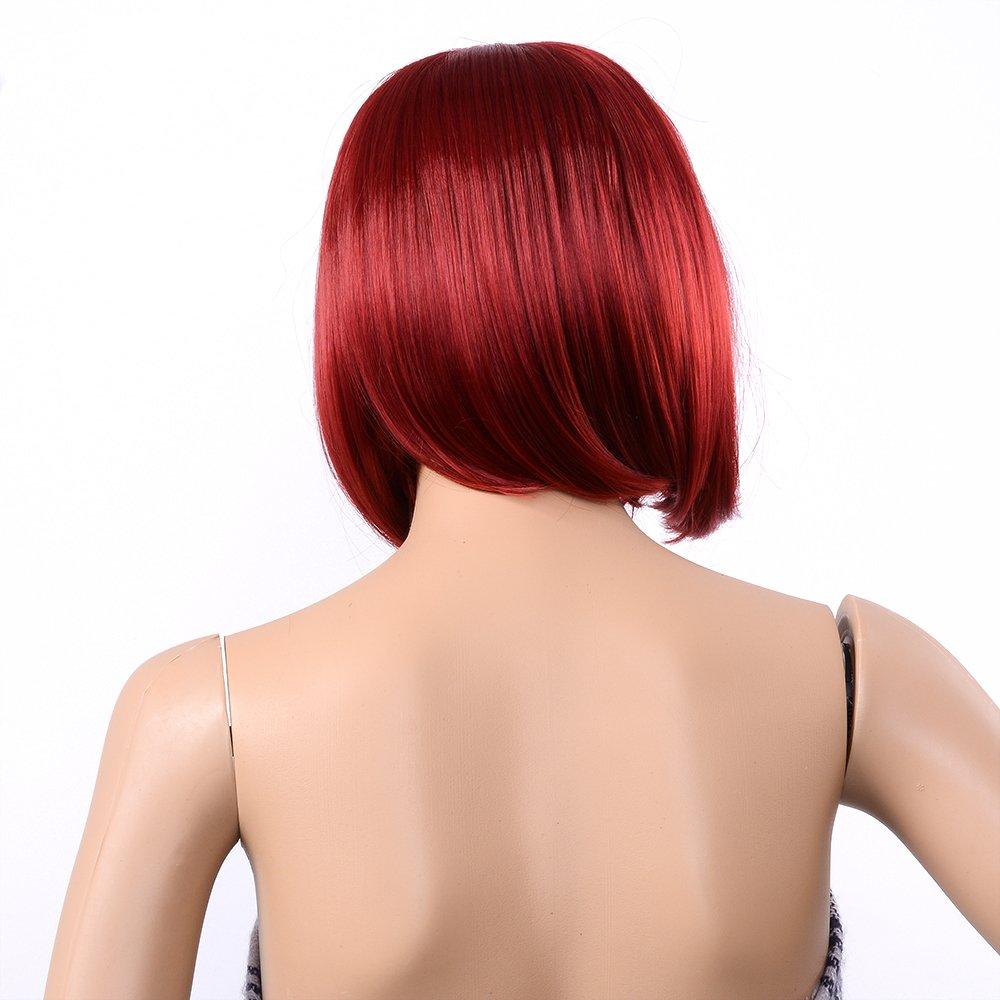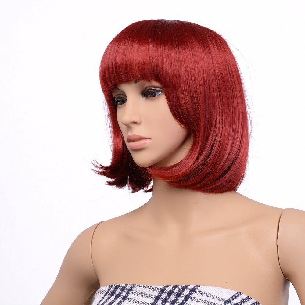 AGPTEK 13 Inches Straight Heat Resistant Short Bob Hair Wigs with Flat Bangs for Women Cosplay Daily Party - Black(Red)