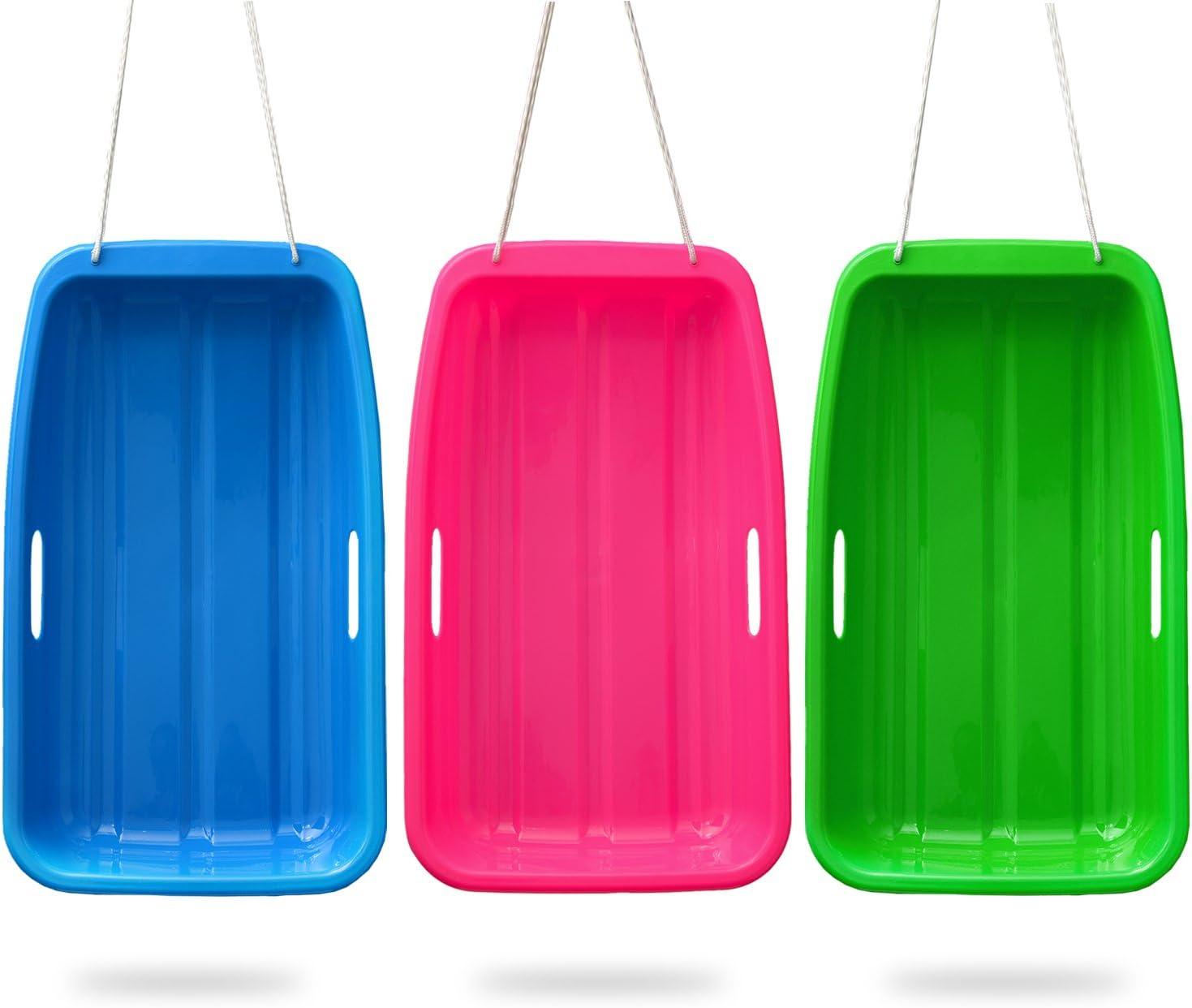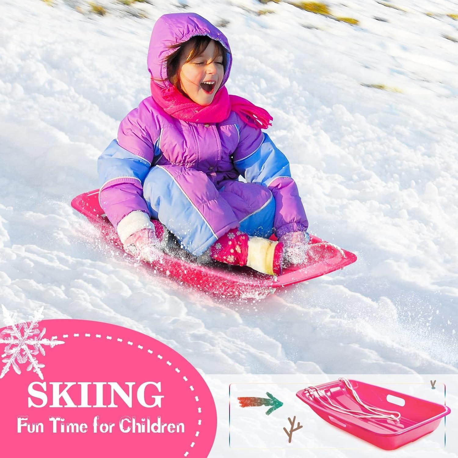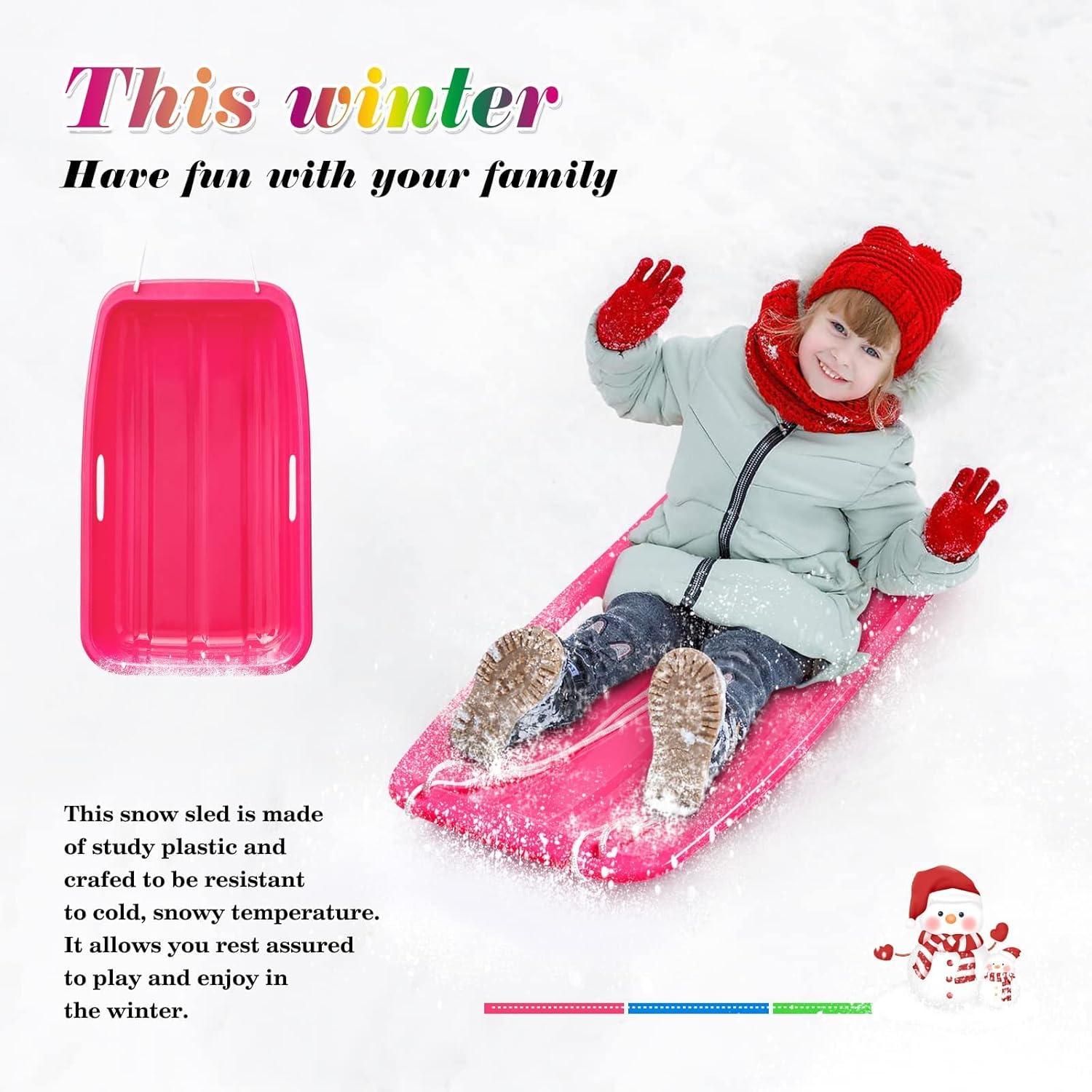 ♦ BUILT IN HANDLES — This kids sled pink has built-in handles for your girls and boys to grip. It is very safe with this AGPtEK Toboggan Snow Sled.