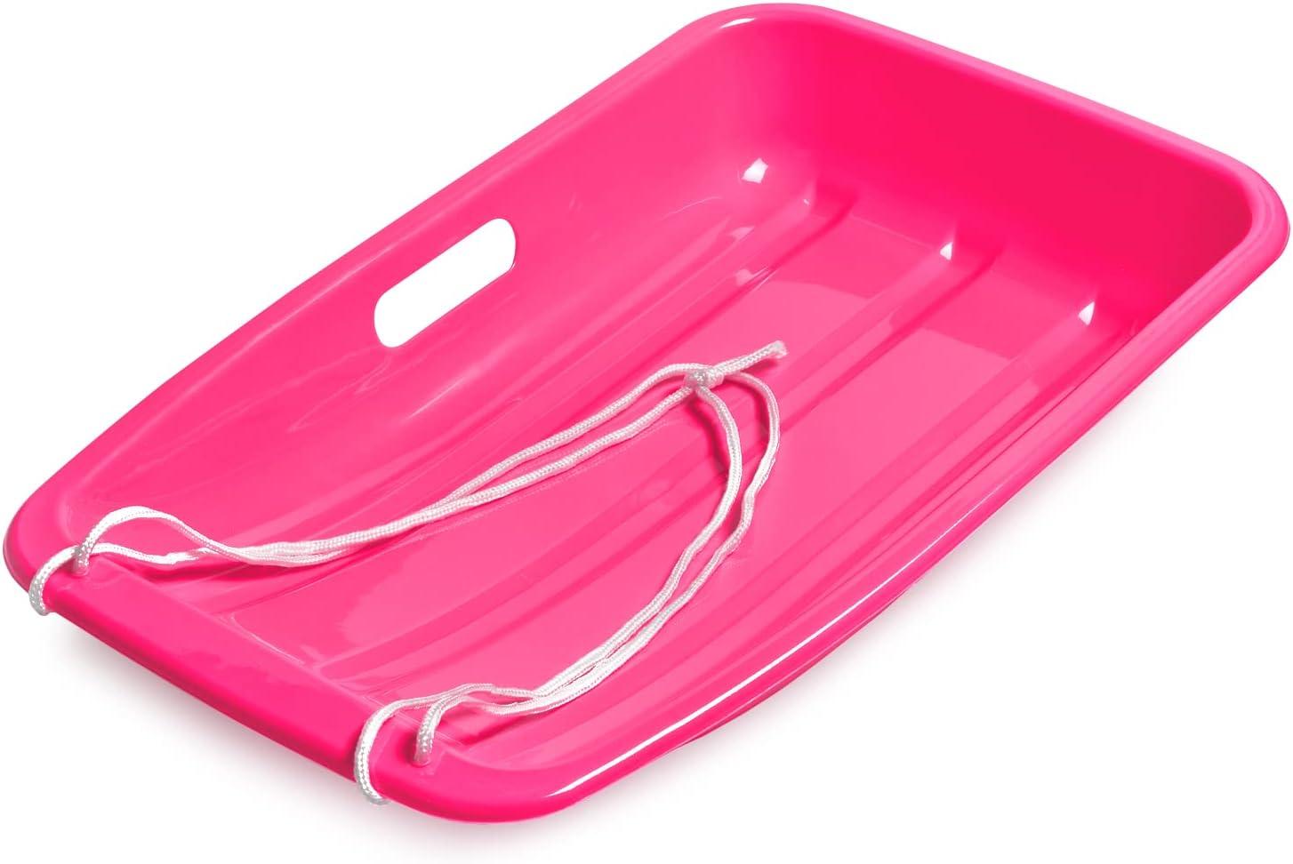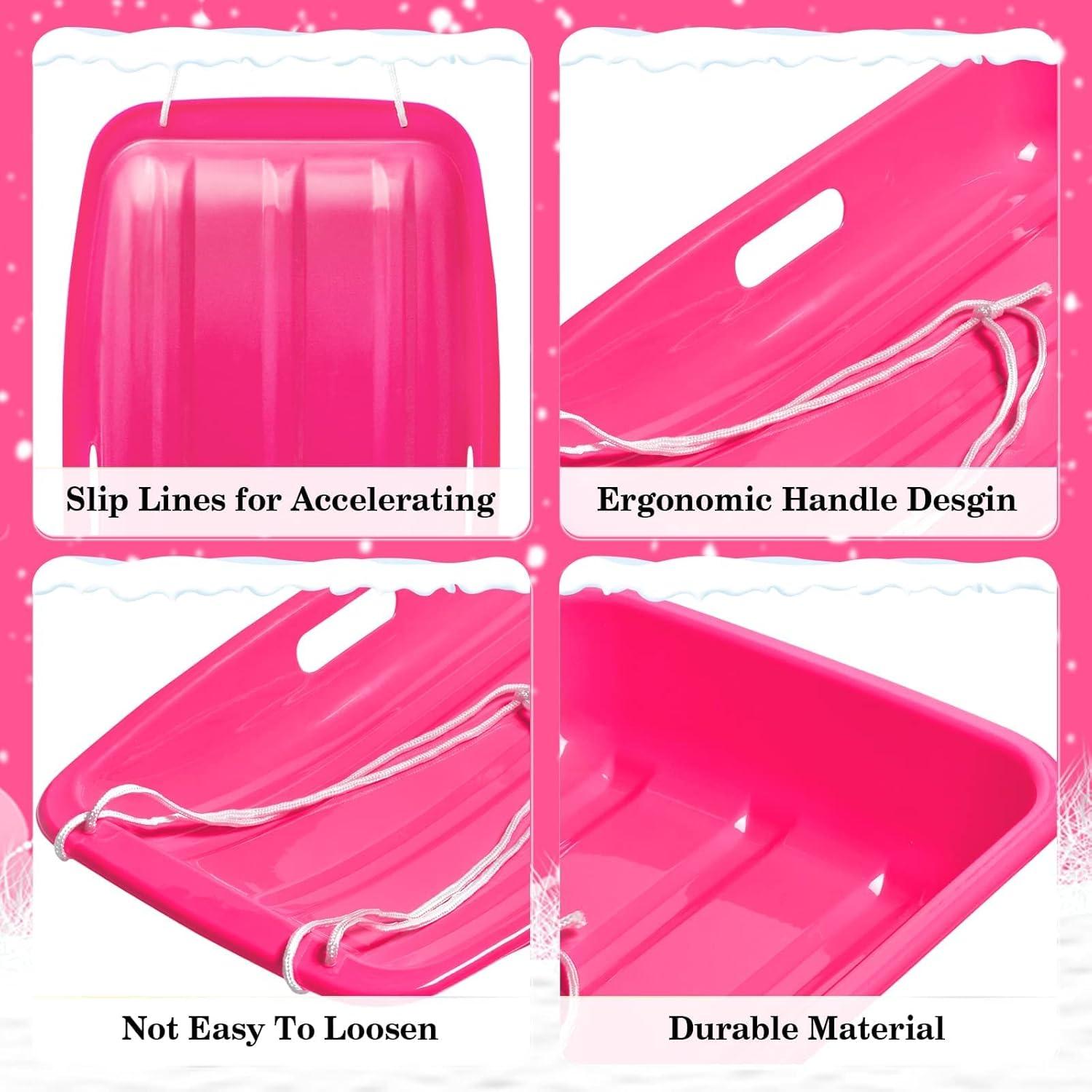 AGPTEK 25.6 Inch Durable Downhill Sprinter Toboggan Snow Sled for Boys Girls with Built-in Handles and Pulling Rope (Pink)