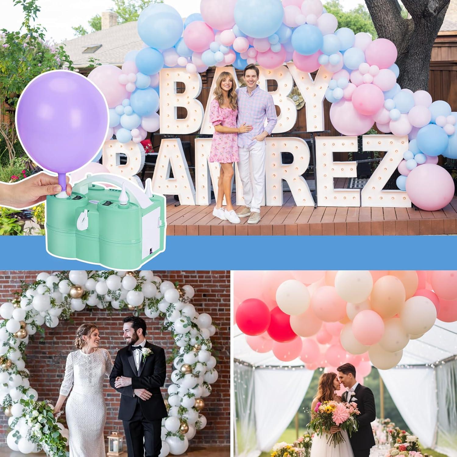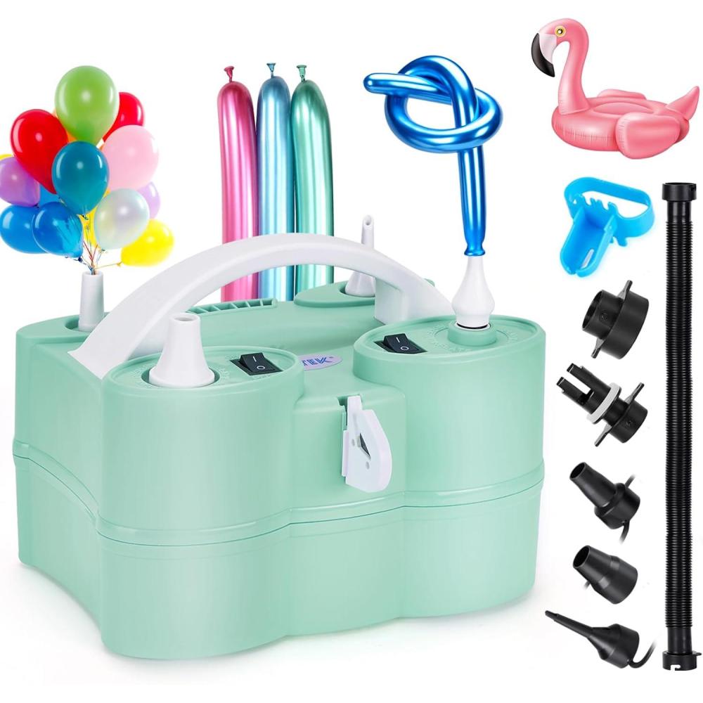 Suitable for all balloons: With two independent high-power motors and two inflation ports, this balloon pump can quickly inflate all types of balloons, including 260q long balloons, foil balloons, latex balloons, and letter balloons. It's perfect for balloon arch making, animal balloon DIY, and party decorations, allowing you to effortlessly create a vibrant and festive atmosphere for any party or special occasion.