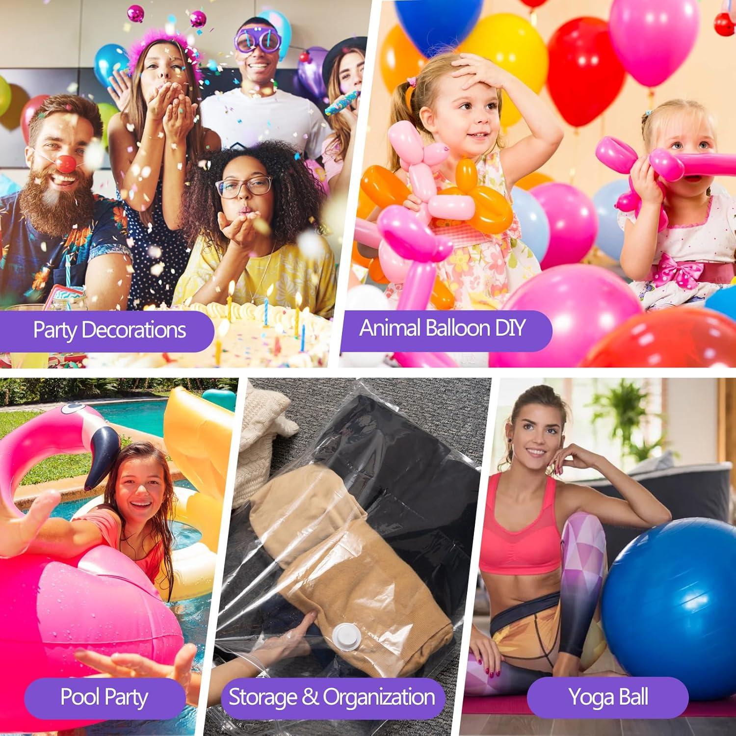 Upgraded 3-in-1 Electric Air Pump: This electric air pump is a versatile 3-in-1 device that can be used for inflating balloons, including latex balloons, foil balloons, and 260q long balloons. It can also be used as a deflation pump for inflatable items and a vacuum pump for storage bags.