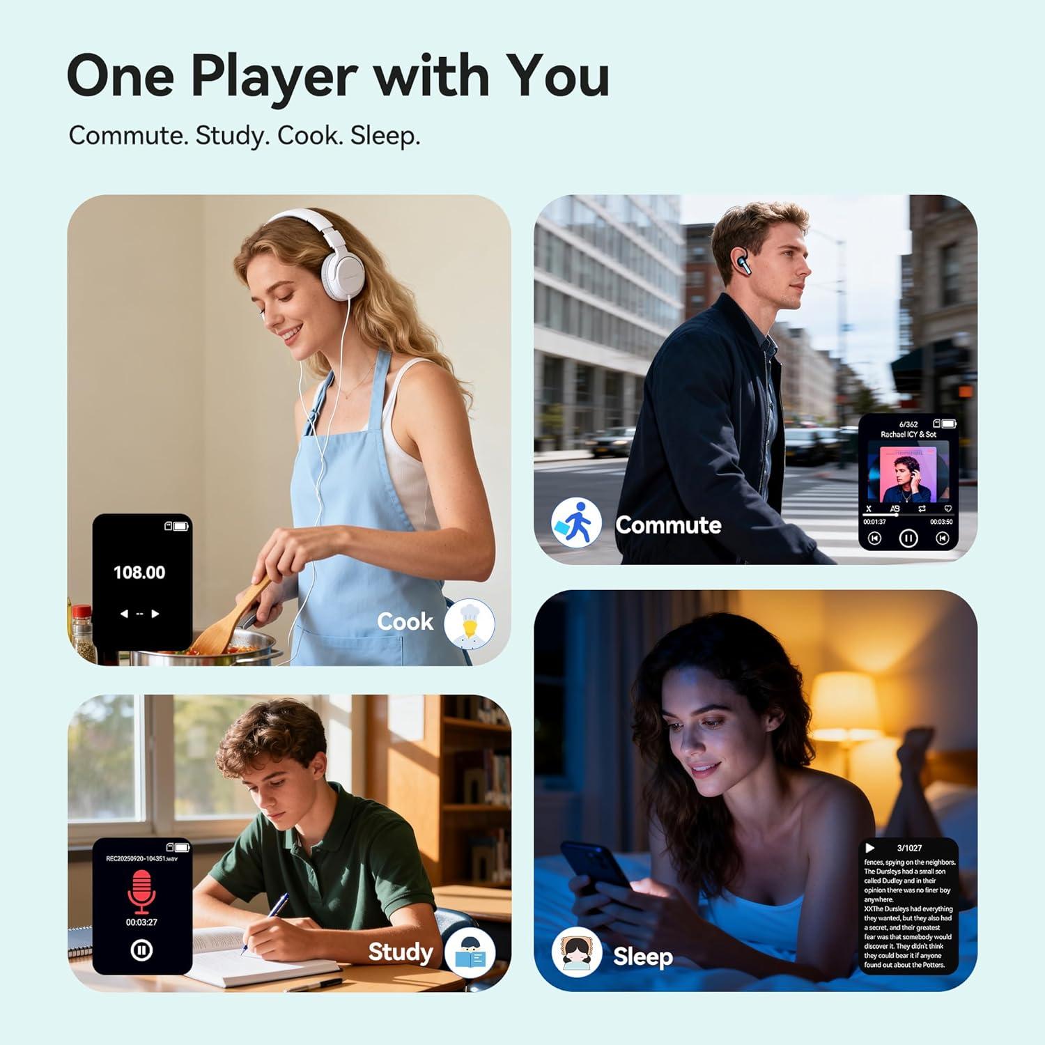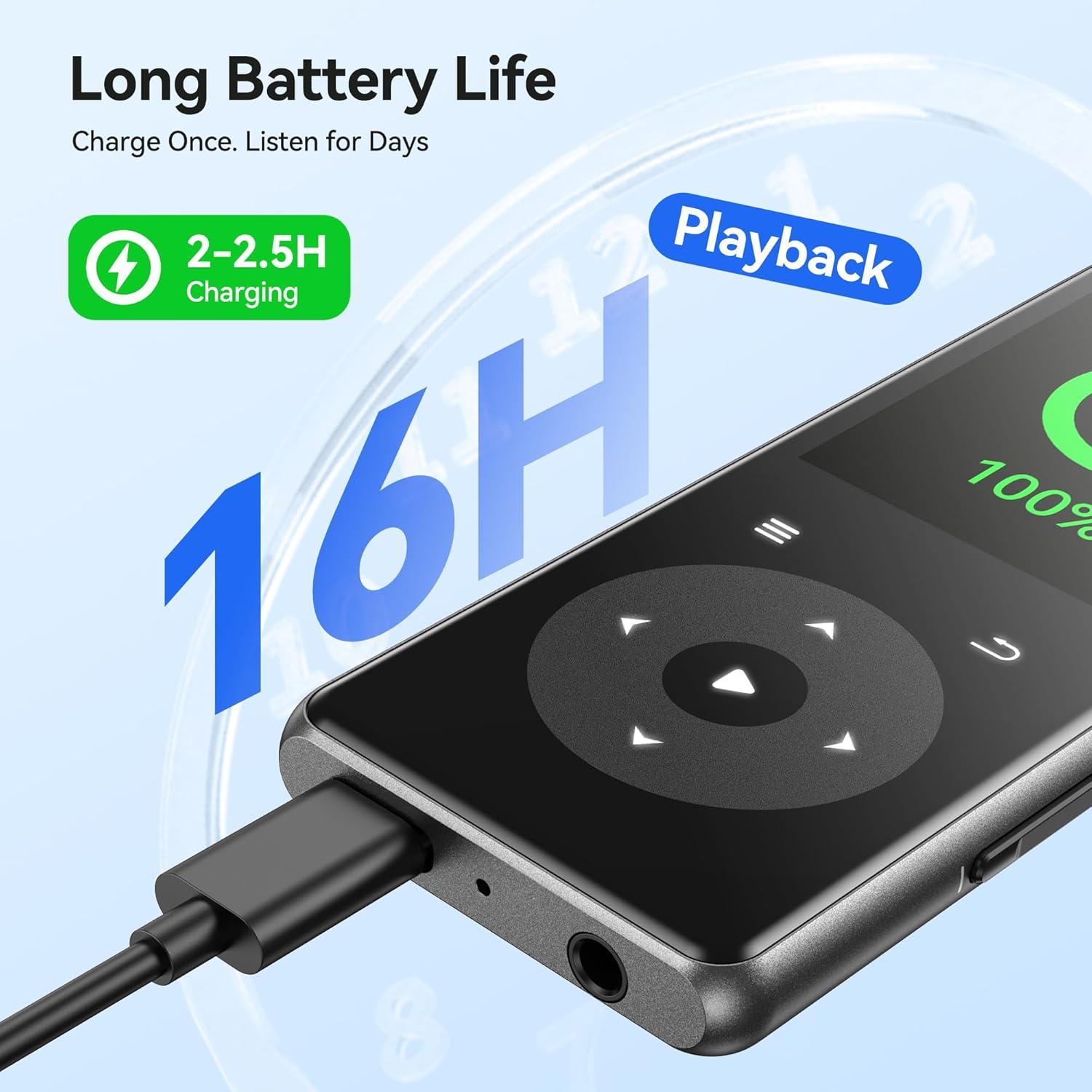 With Auto-Reconnect Bluetooth 5.4 – Equipped with advanced Bluetooth 5.4 for stable connection and low power consumption. This mp3 player with bluetooth will automatically reconnects to your last paired device when powered on, so you can start listening instantly without any manual pairing.