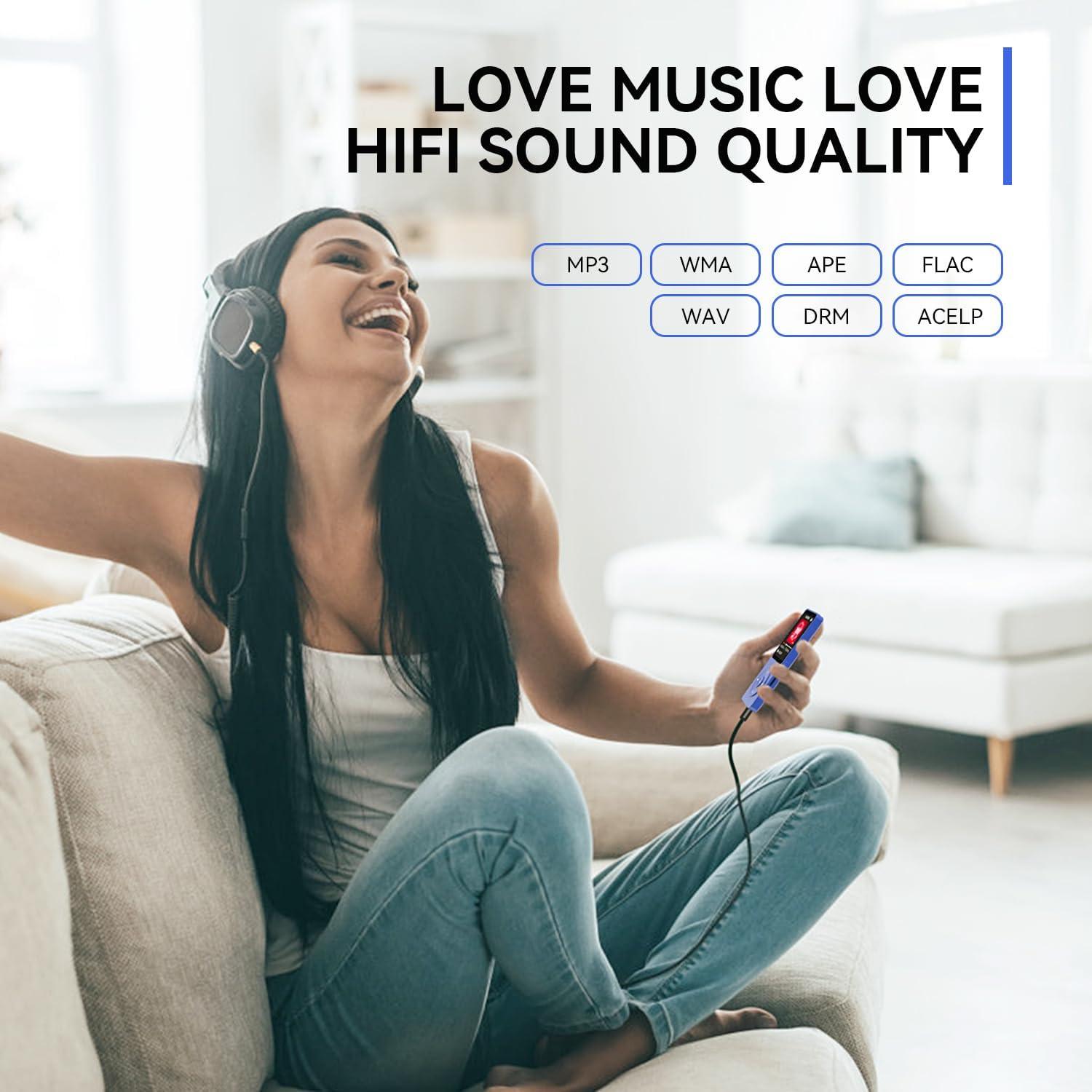 【Lossless sound quality】Support formats:MP3, WMA, OGG,WAV, APE, FLAC, AAC-LC, ACELP.【Note It does not directly support Audiobook and iTunes.】Built-in speaker, Brings you amazing listening experience. [Tips: First, long press the “VOL” button to enter the volume control, then press the left or right button to increase or decrease the volume.]