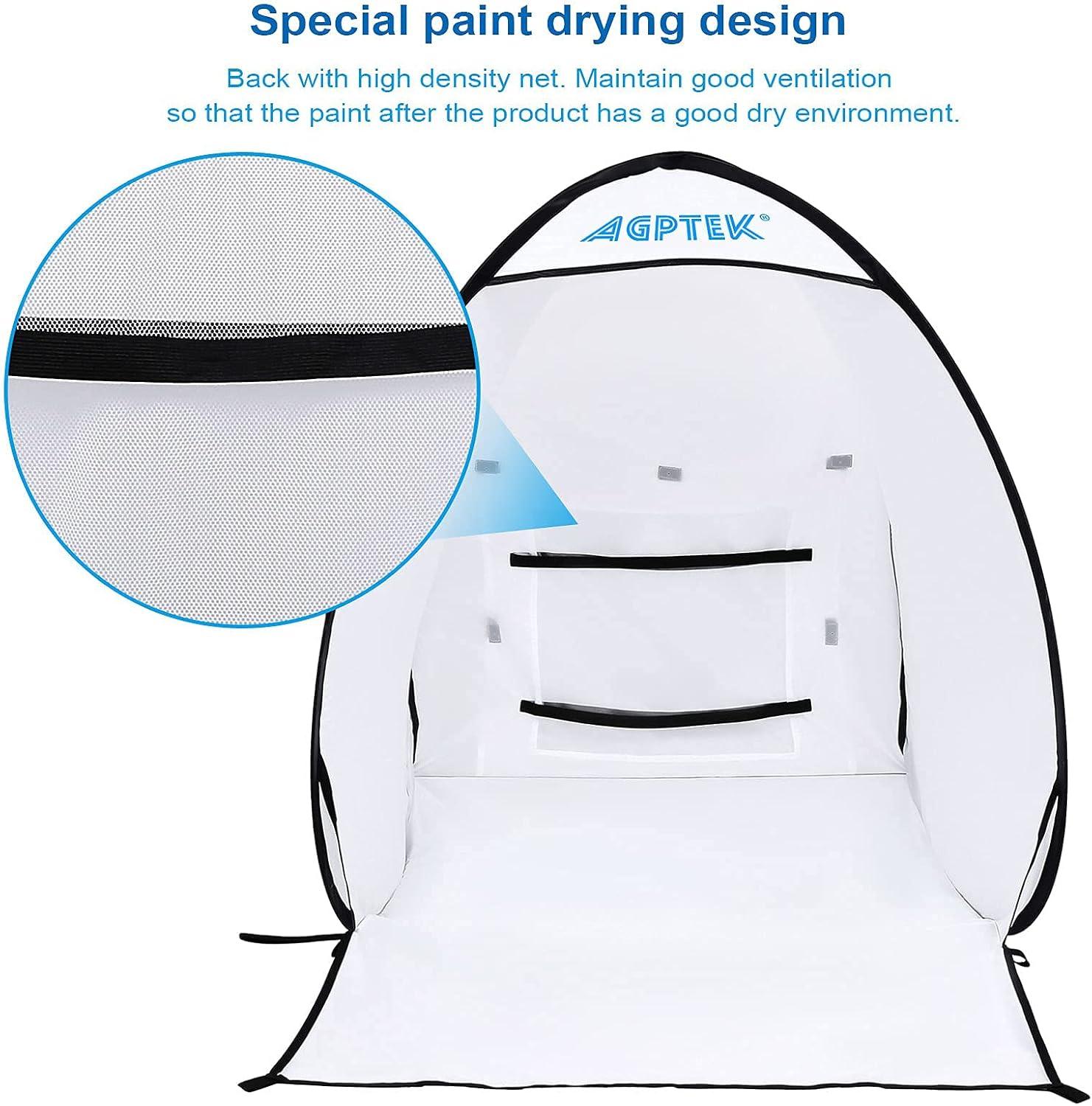 ◆ USER-FRIENDLY DESIGN: The spray paint shelter is made up of white polyester material that can provide the light in a maximum way. The arc-shaped design from three sides and a built-in mesh scroll ventilator scoop can help solve the problem of overspraying and make the air flow keep moving constantly.