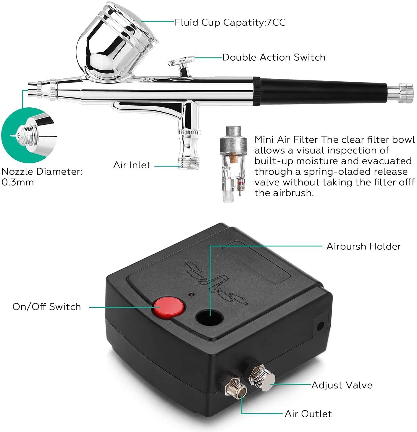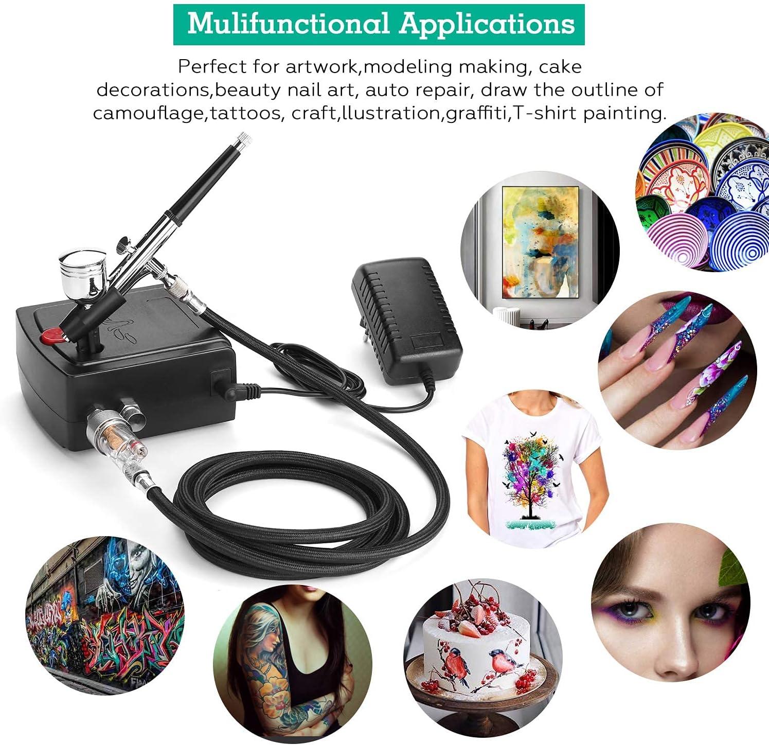 ◆ WIDE APPLICATION: The mini airbrush kit is way suitable for both beginners, students as well as senior artists. Due to its unique and special feature, the majority of airbrushing applications and paint spraying media are acceptable. There is a wide application among craft, auto graphics, temporary tattoo, cake decoration, fine arts, manicure and more.