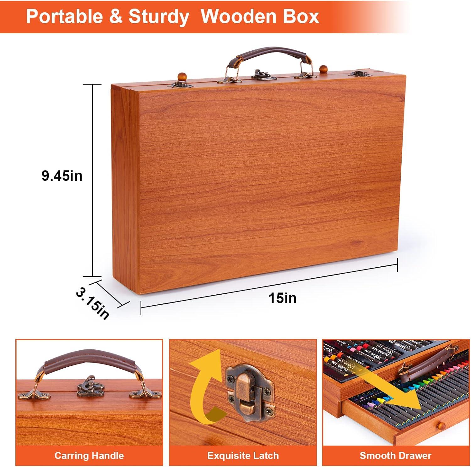 UNIQUE WOODEN CASE: It comes with a three-layer wooden painting case made of good material. It enables drawing tools to be simple and nice-looking and meanwhile, you can quickly find the type of pencil you want. The size is 38 * 24 * 8 (Length * Width * Height). Therefore, you can take this portable wooden case with you wherever you go.
