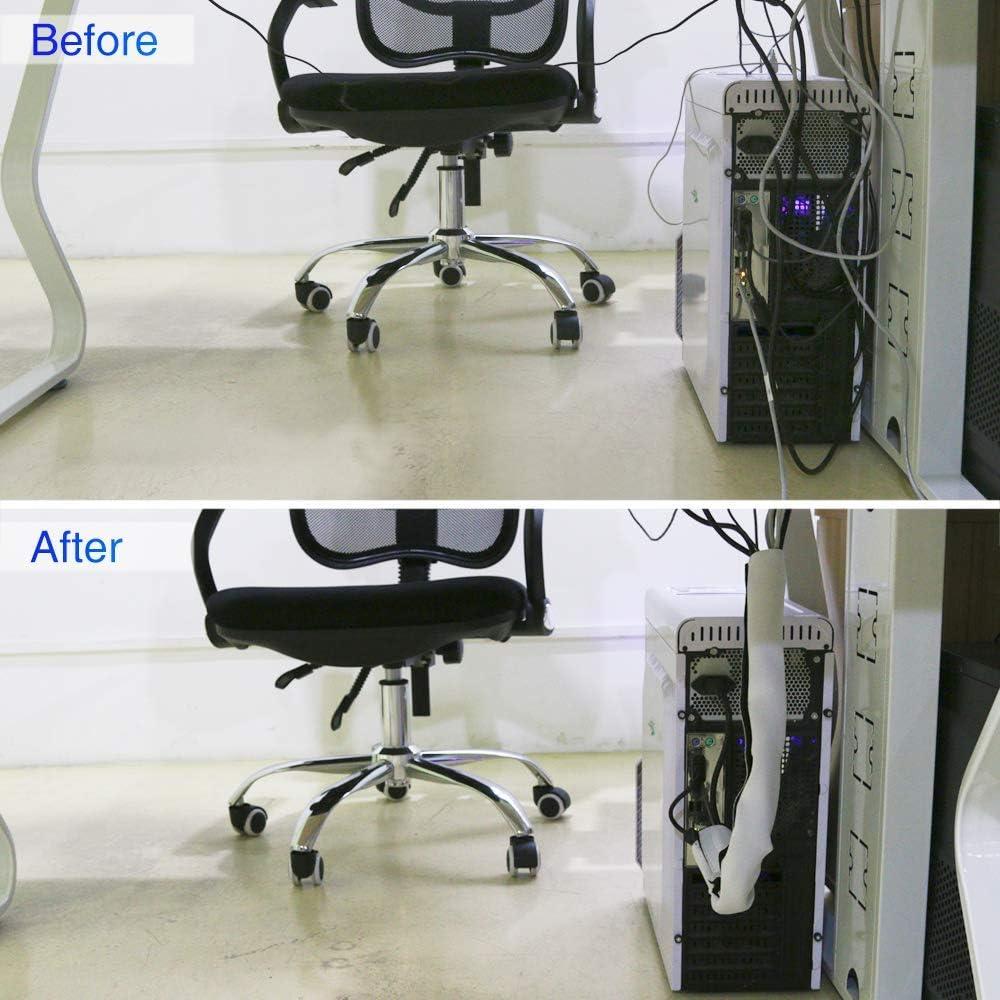 【NEAT AND TIDY】118″ long, 5.3″ wide, 1.5″ in diameter cable management sleeves is a simple and convenient solution for your cables, making all the cables wrapped up and hidden in one sleeve, no more messy and tangled wires.