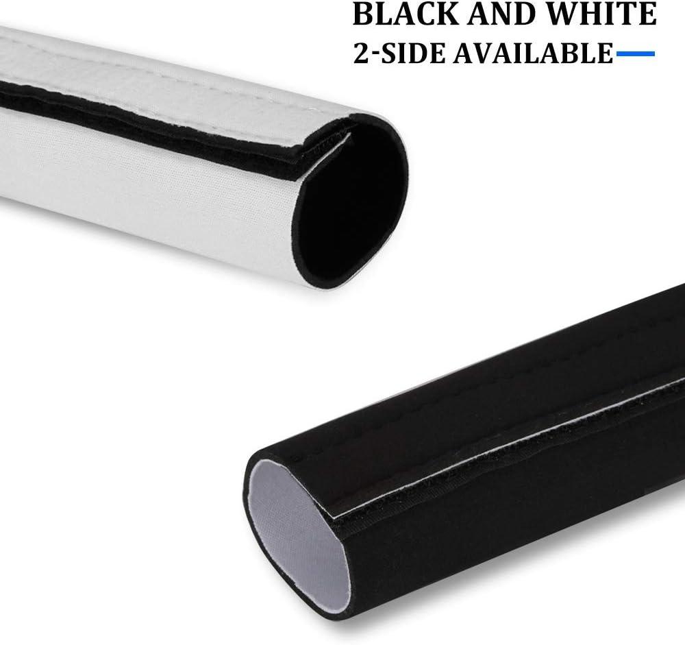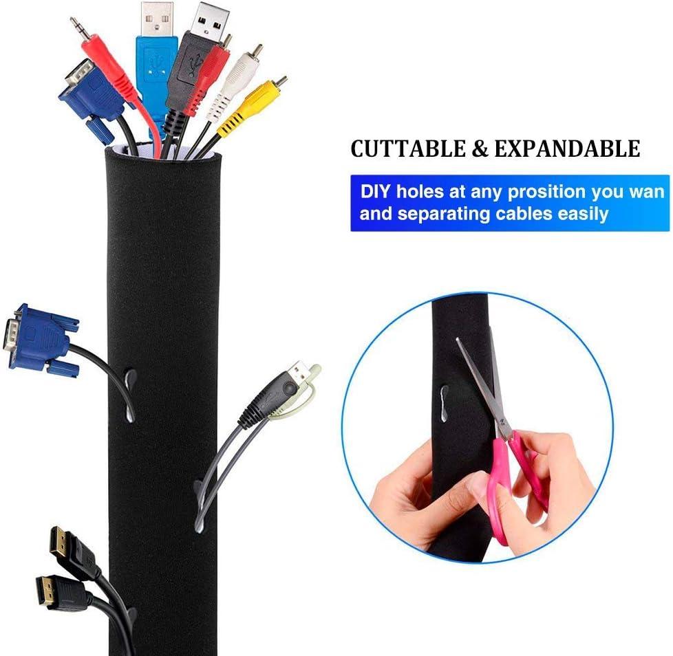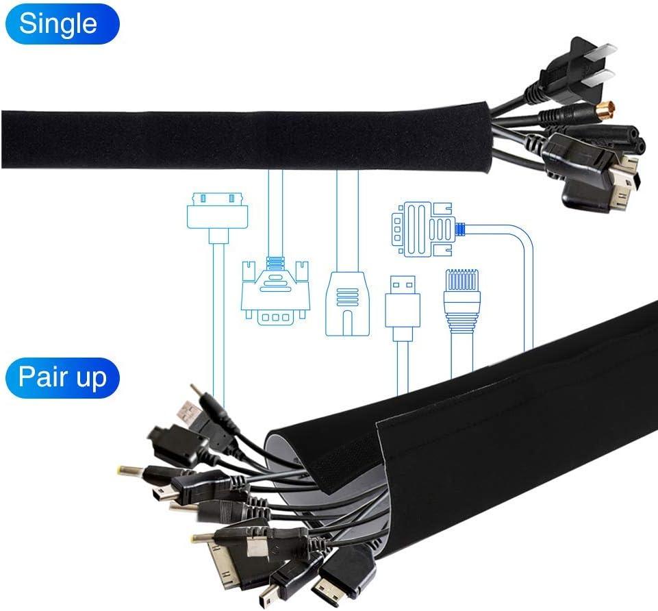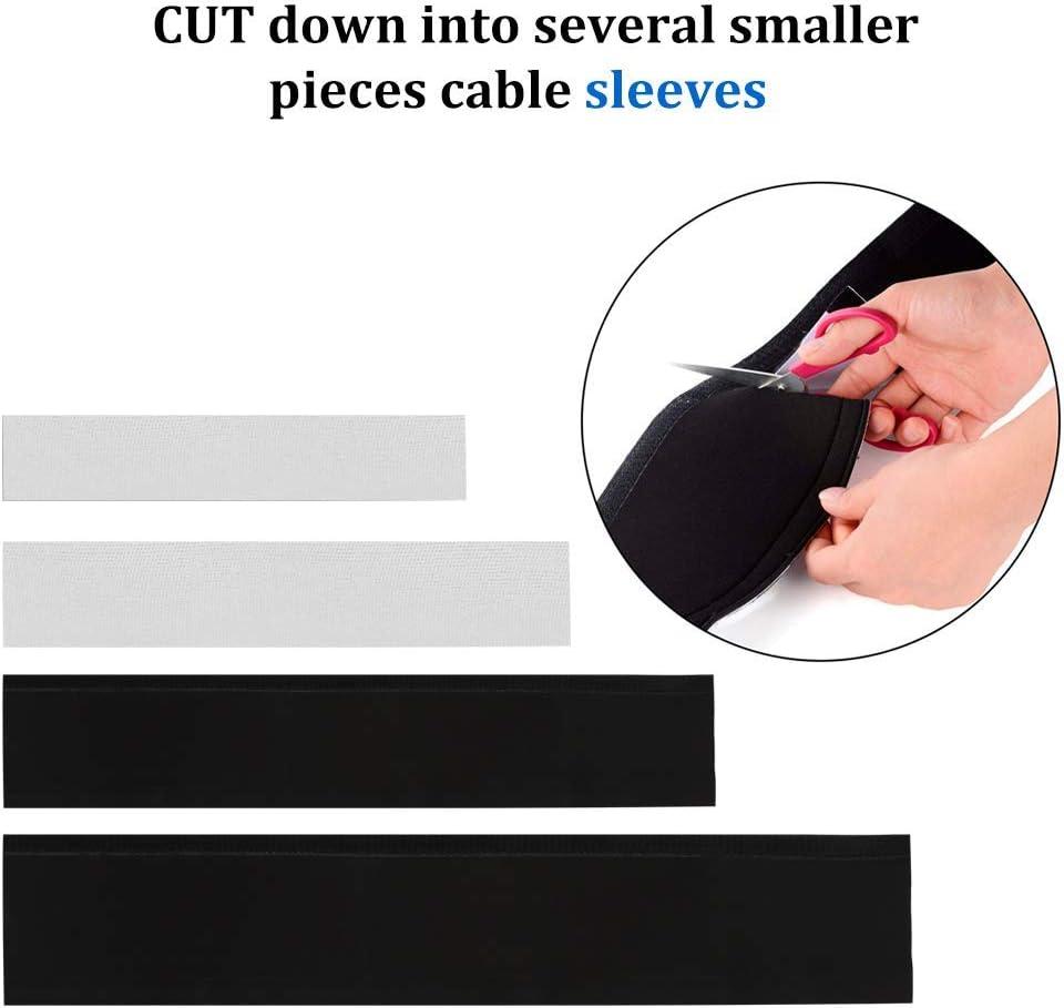114″” extended cable sleeve length, feel more convenient in your cable management the cable sleeve is a simple, convenient solution for managing all of the cables behind your tv / computer / home theater / speaker, flexible cable wrap, cable cover, cable organizer, cords management the cable sleeve is made from neoprene stretchy material which can stand up to plenty of wear and tear without being damaged and allow for multiple cables and flexibility, yet it can still be easily cut with scissors to get the perfect length to match your needs. The sleeve is about 2 inches wide when closed, which allows you to put up to 10 cables inside the sleeve. That would turn that tangled, knotted mess of wires behind your desk into one organized group. Black/white reversible colors fit seamlessly and perfect for home or office use. Other solutions, like using tie-wraps or duct tape are annoyingly permanent, and can be very unsightly. By using to close the sleeve, it makes your wires easy to get to when needed. And by using a sleeve instead of ties, the wires look much more attractive. If you are looking for an attractive, affordable, and convenient cable management system, look no farther than this cable sleeve. Product dimensions: 114 x5.3 inches.
