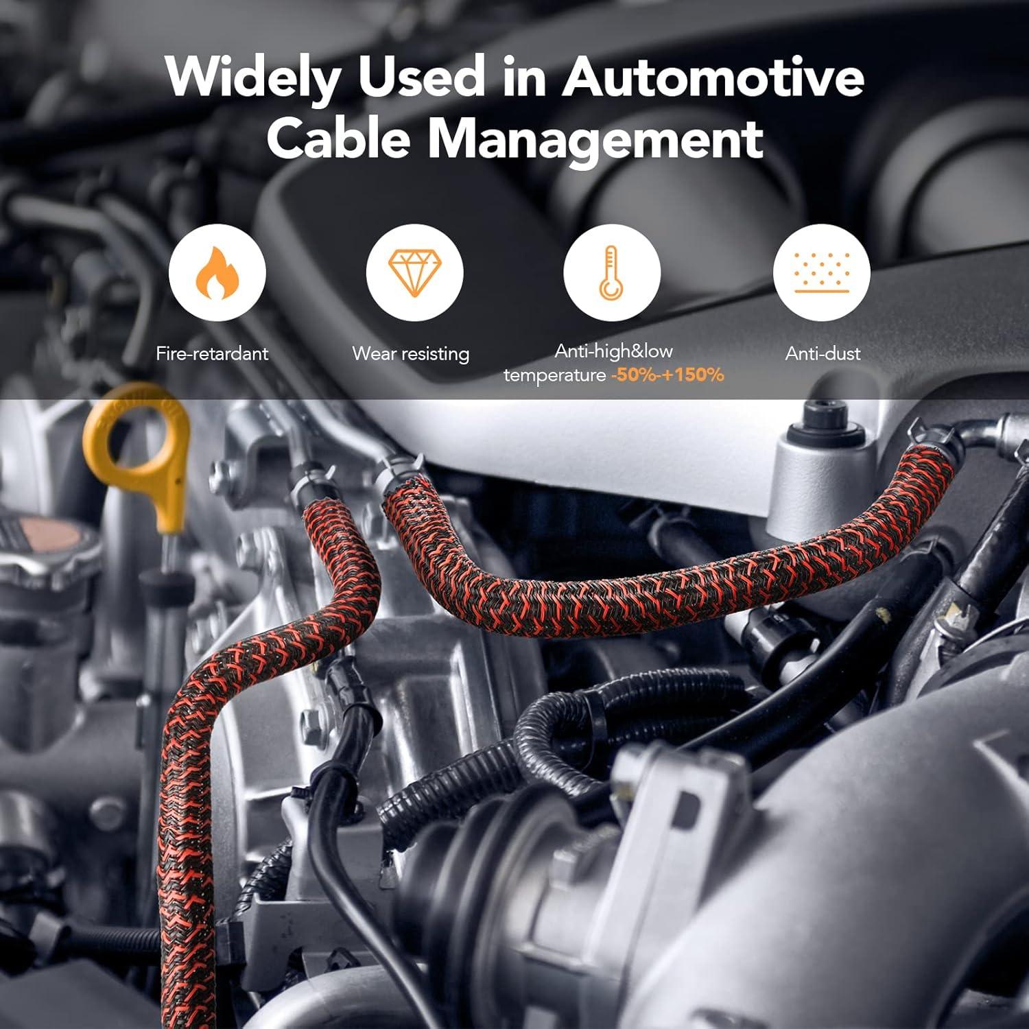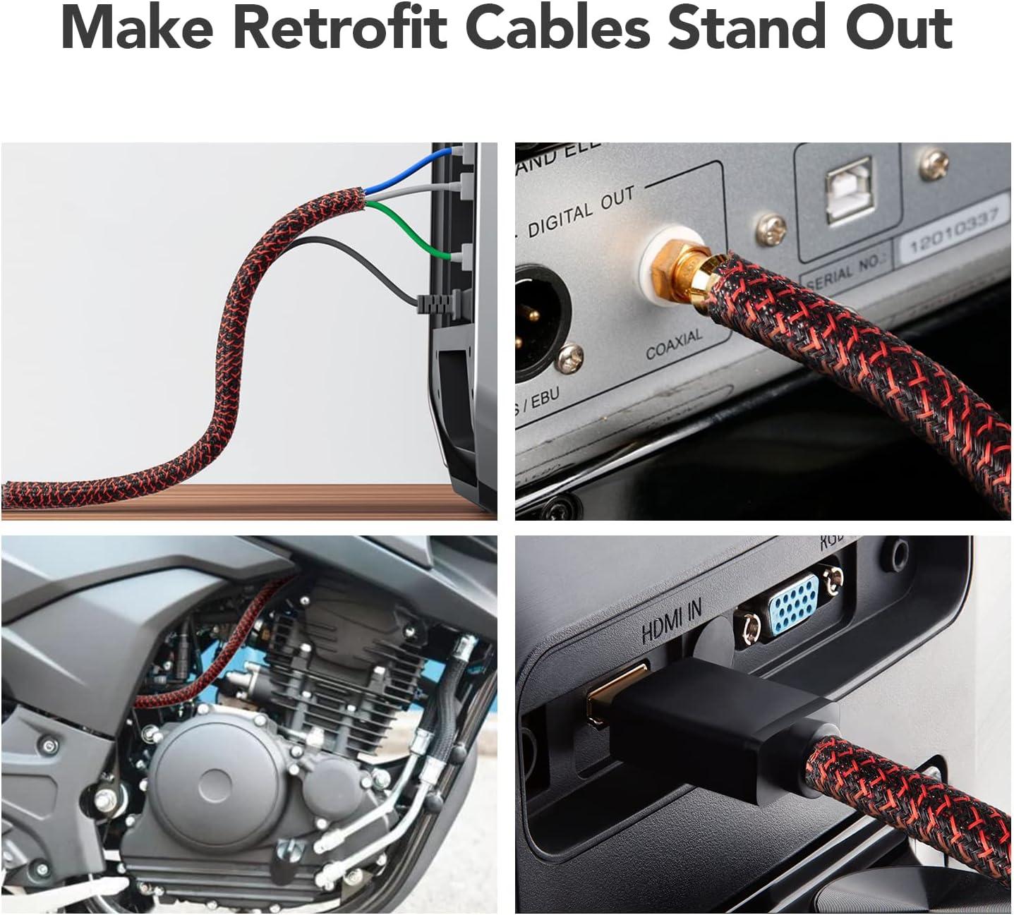 AGPTEK Cable Sleeve Cover, 10ft - 4/5 inch Desk Cord Organizer Cable Hider, Home Office Wire Management Computer TV Wire Loom Tubing, Pet Proof Cord Protector, from Cat Dog Chewing, Black(BlackRed)