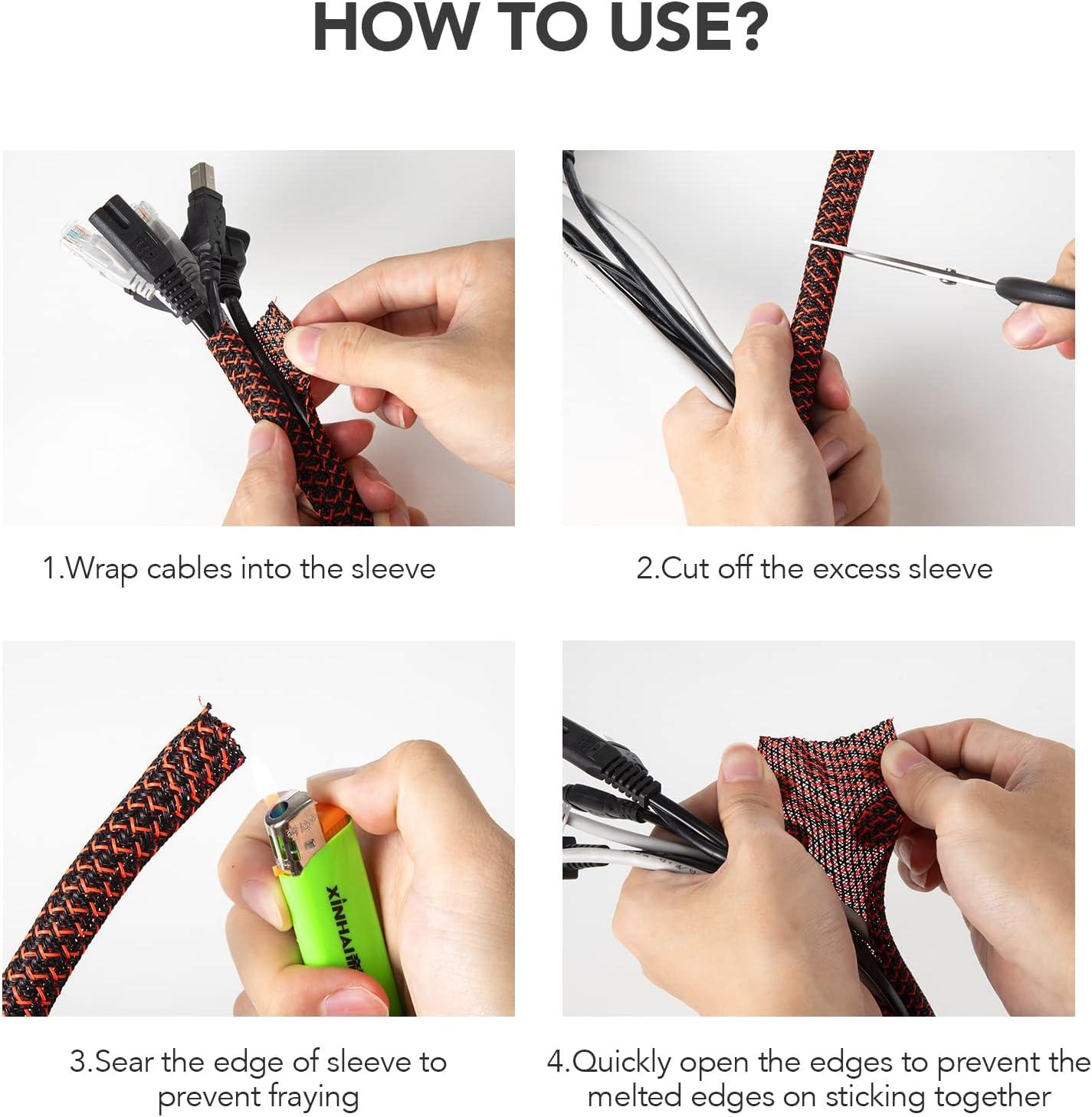 AGPTEK Cable Sleeve Cover, 10ft – 4/5 inch Desk Cord Organizer Cable Hider, Home Office Wire Management Computer TV Wire Loom Tubing, Pet Proof Cord Protector, from Cat Dog Chewing, Black(BlackRed)