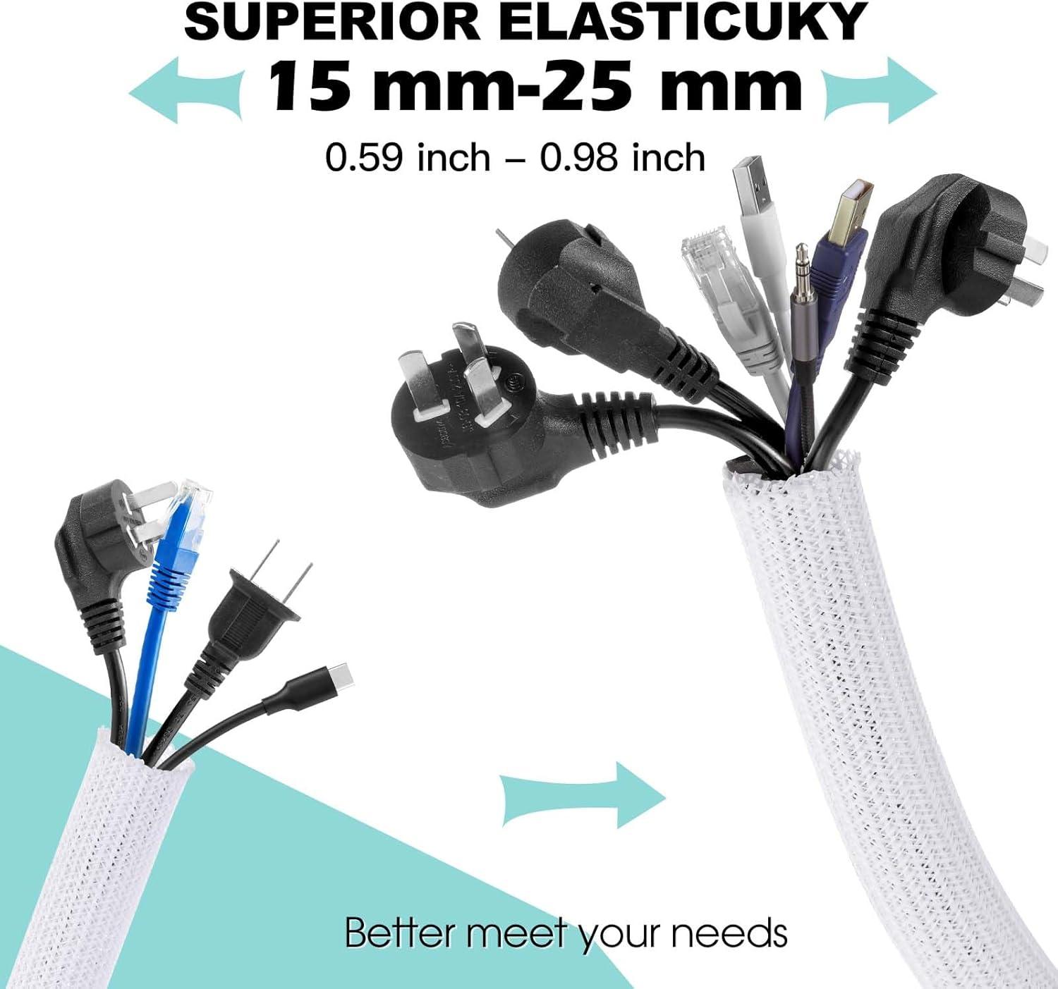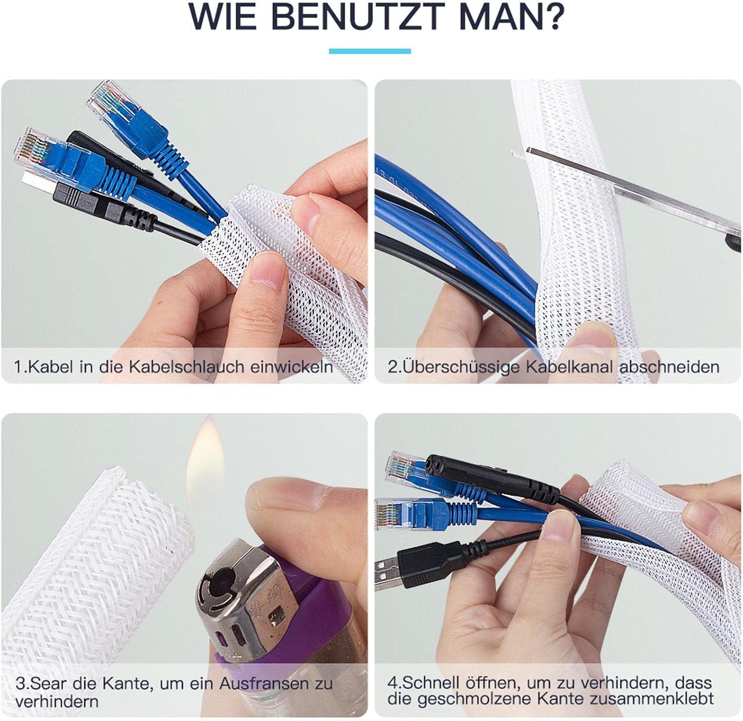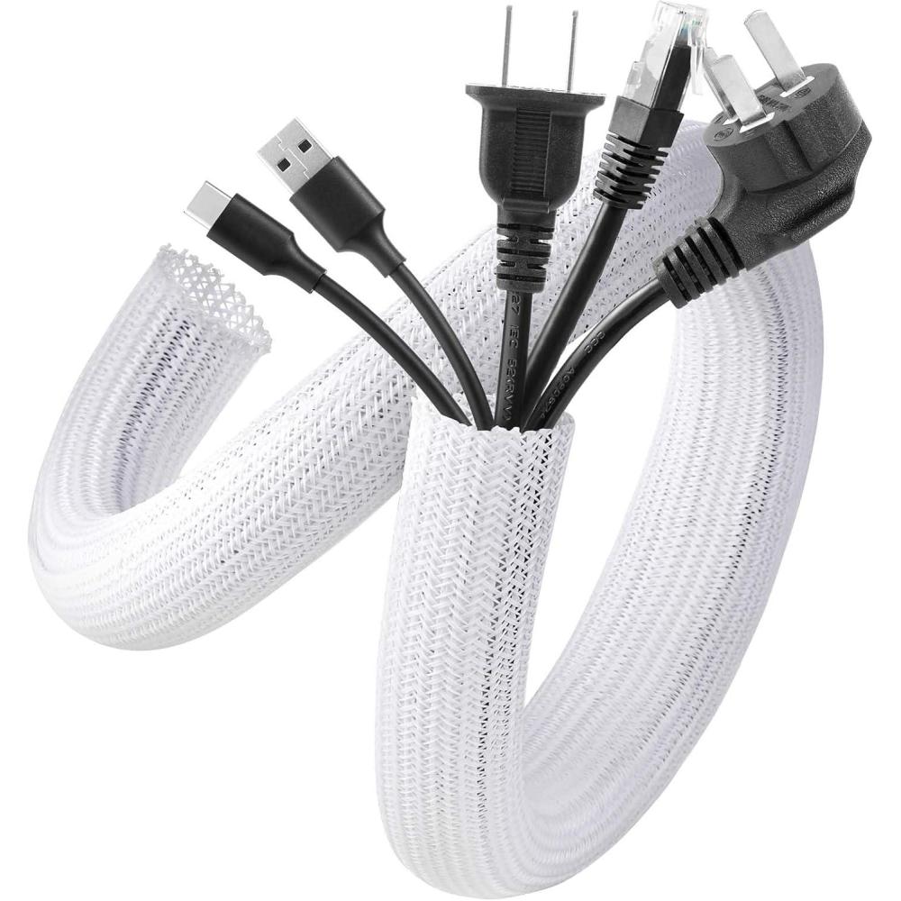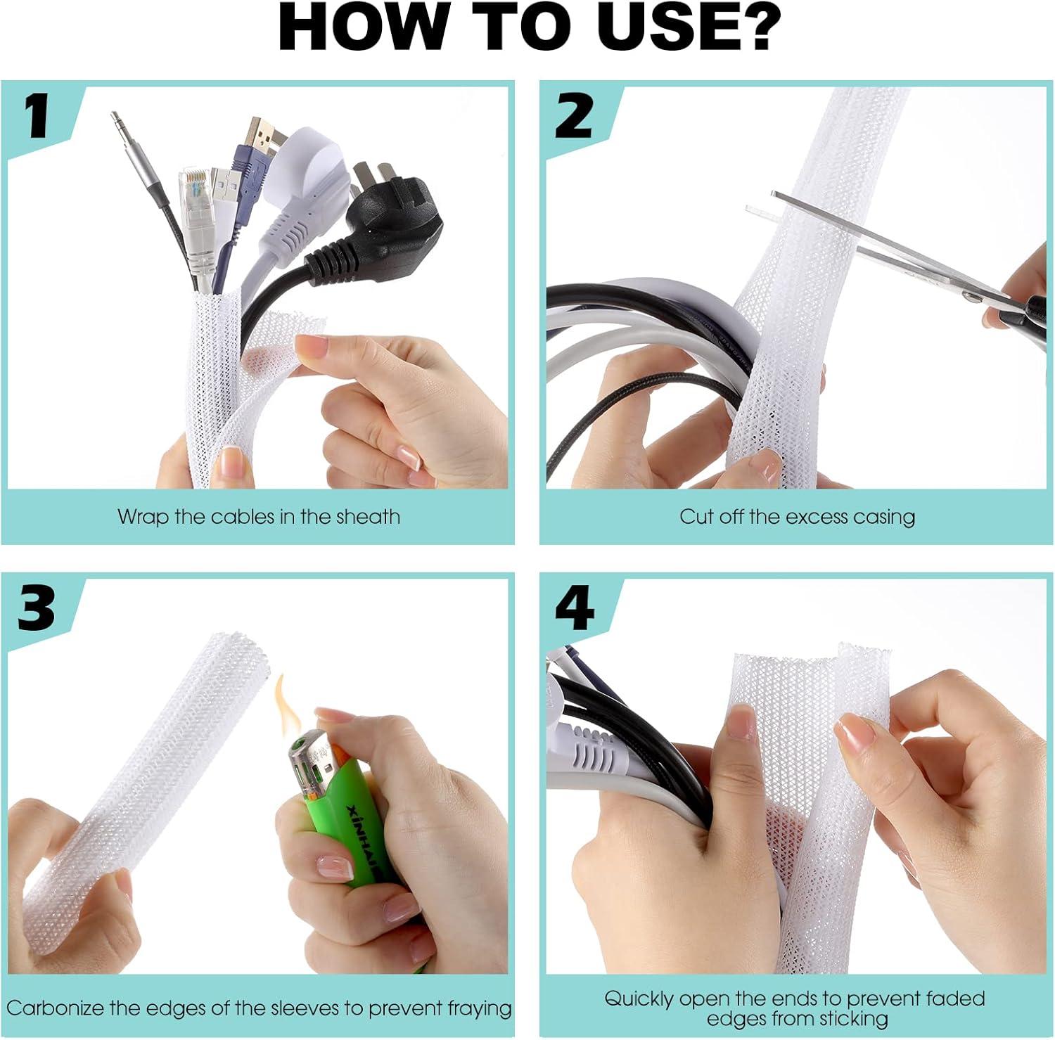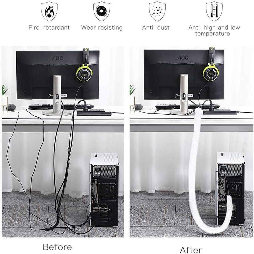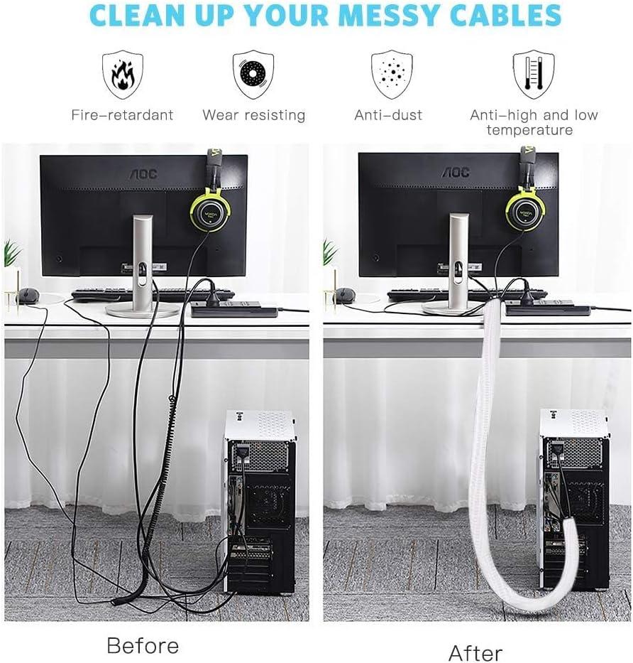 【Wire Cover for Many Cables +Easy to cut 】The cable tube can be easily cut with scissors. Length: 10 feet. Diameter: 0.8 inch. They can hold different sizes of cables for you. Especially suitable for corners (it is recommended to cut the cutting position with fire after cutting to prevent spreading)