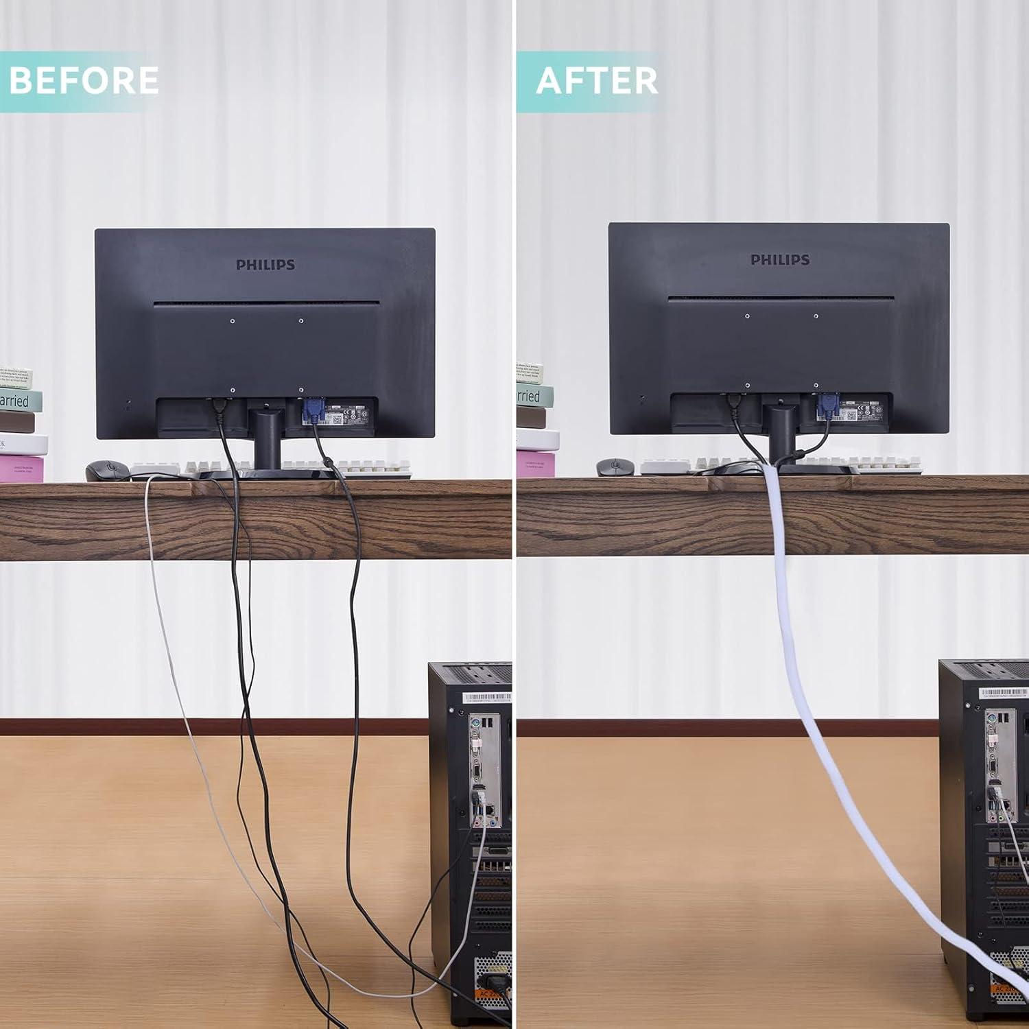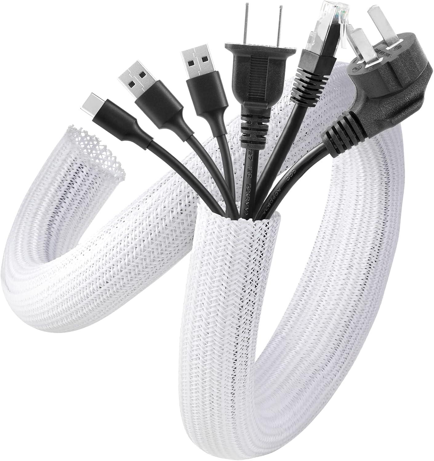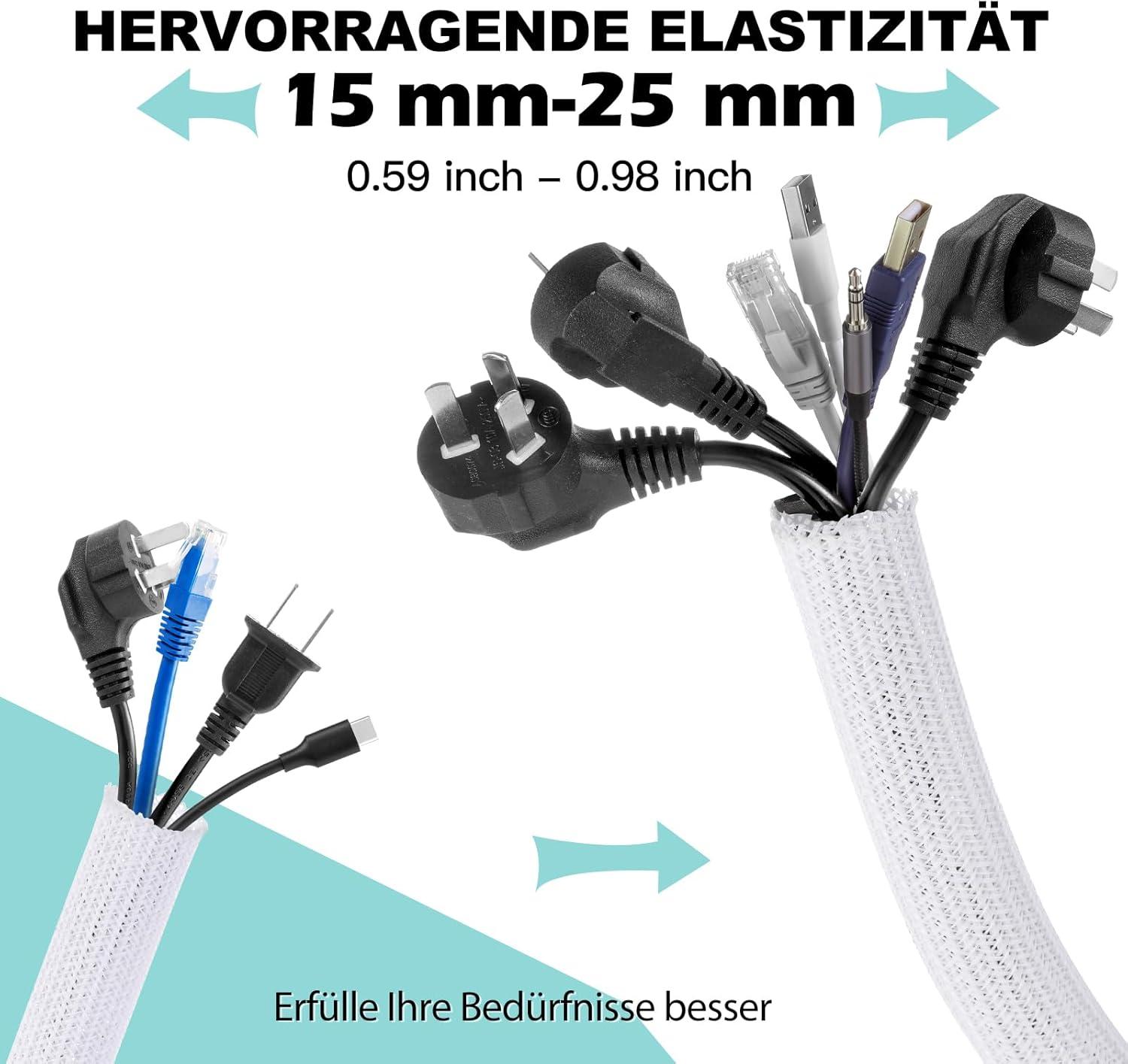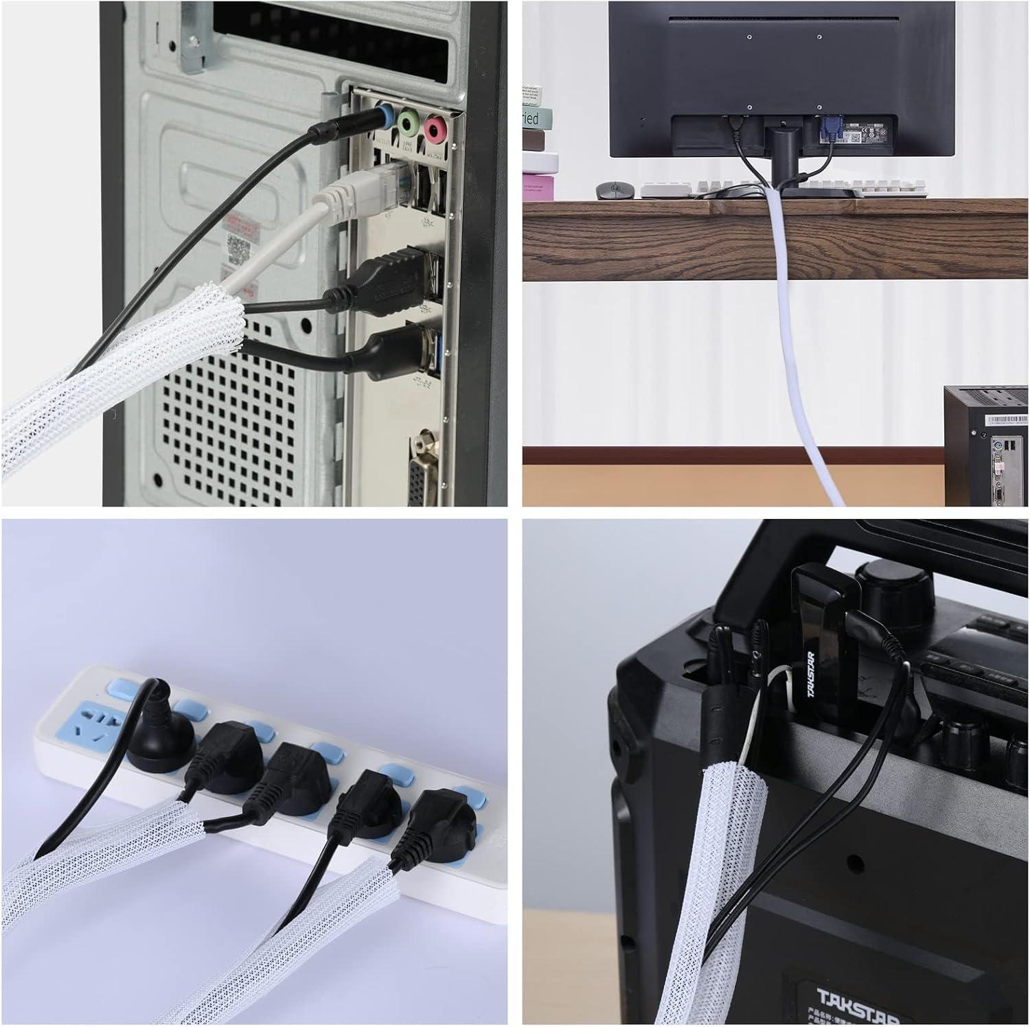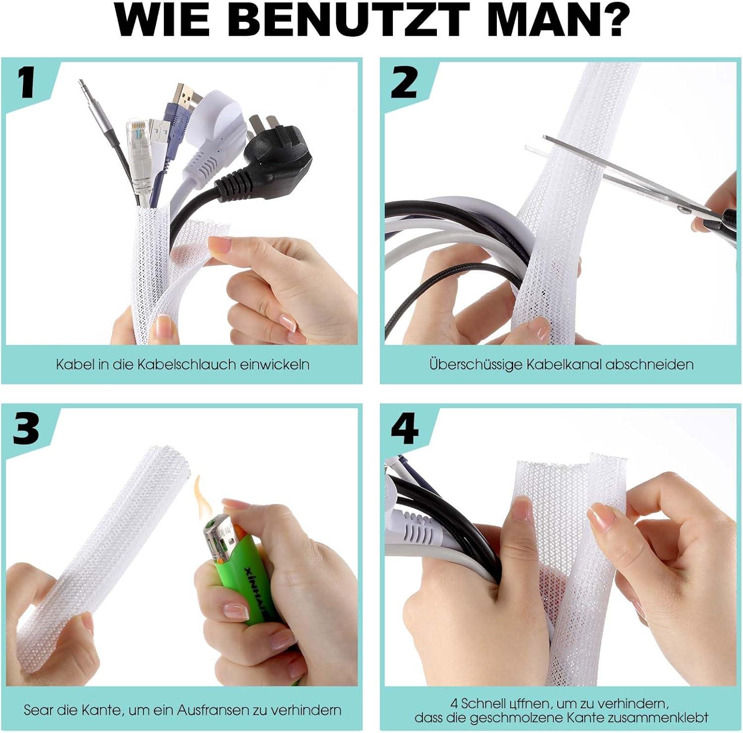 【Wire Cover for Many Cables +Easy to cut 】The cable tube can be easily cut with scissors. Length: 10 feet. Diameter: 0.8 inch. They can hold different sizes of cables for you. Especially suitable for corners (it is recommended to cut the cutting position with fire after cutting to prevent spreading)
