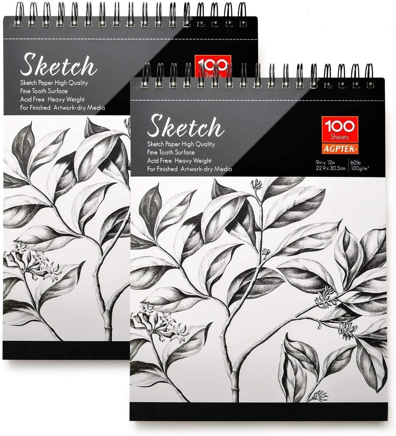 AGPTEK Drawing and Sketching Pencil Set Bundle with 2 Pack Sketch Books, 9″ X 12″, 200 Sheets