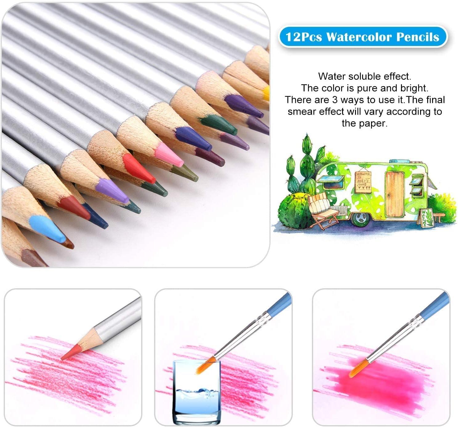 imageAGPTEK 53pcs Drawing Supplies Set Art Pencils ampamp Watercolor Pencils With Canvas Case for Artists ampamp Students1 Count Pack of 1