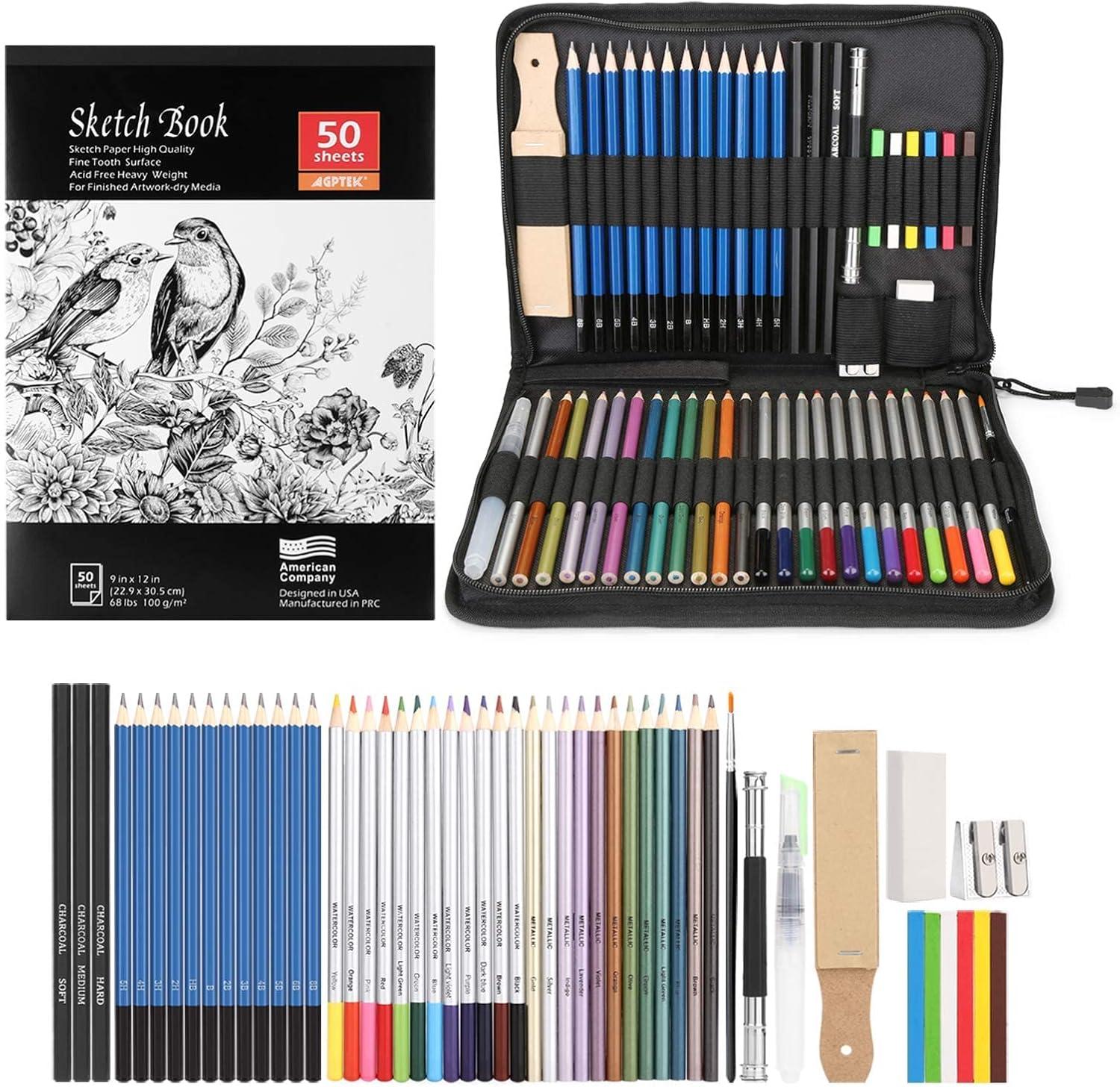 AGPTEK 53pcs Drawing Supplies Set, Art Pencils & Watercolor Pencils With Canvas Case for Artists & Students(1 Count (Pack of 1))