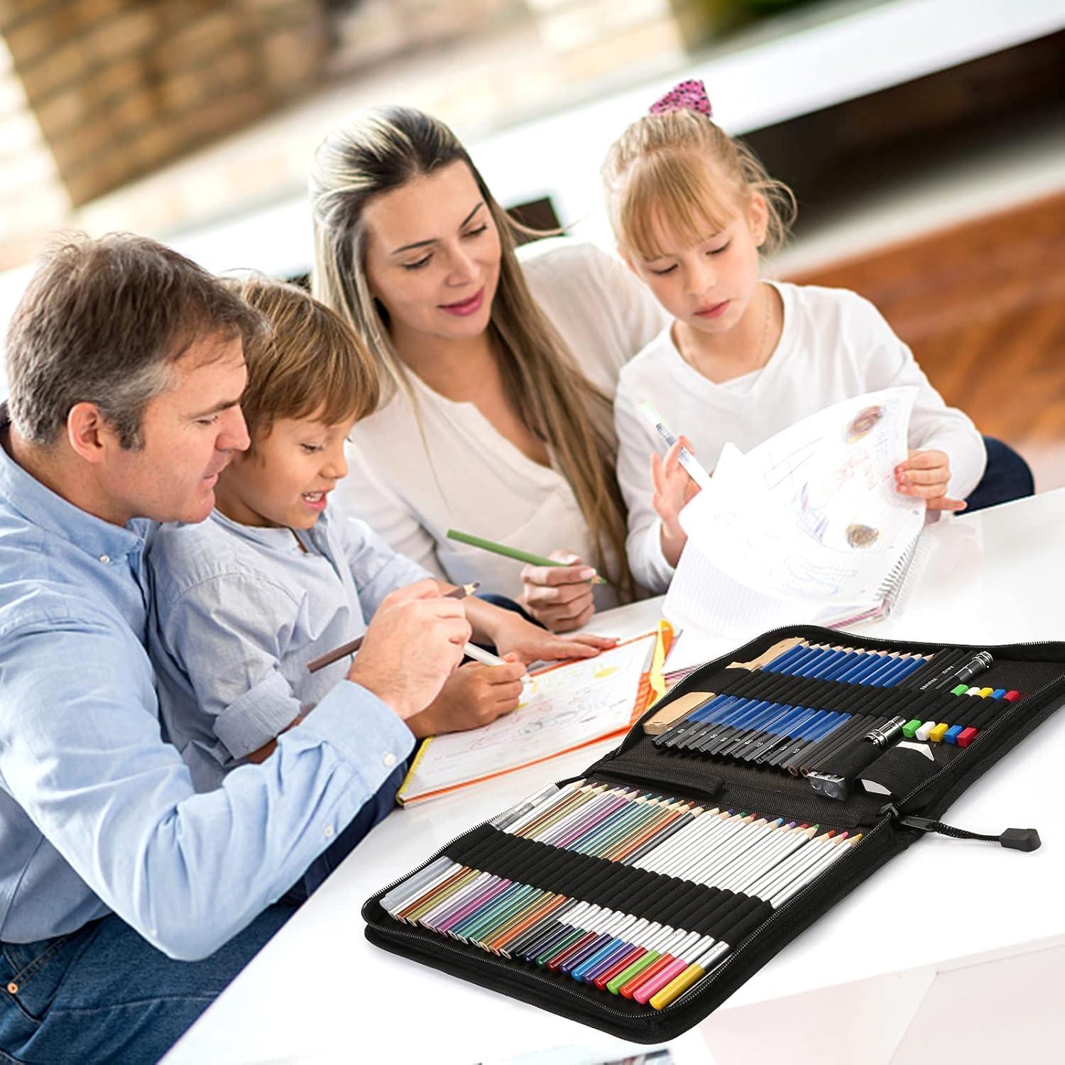 Package: 2 * 100 Sheets Sketch Books(side spirial bound); 12 * Metal Colored Pencils; 12 * Water-Soluble Colored Pencils in A3 Pencil Lead; 12 * Sketch Pencils; 3 * Charcoal Pencils(Soft, Medium, Hard); 6 * Soft Pastels; 1 * Water Brush Pen; 1 * Nylon Bristle Brush; 1 * Sandpaper Board; 1 * Double-End Extender; 1 * Dual Head Pencil Extender;. 1 * White Eraser; 1* Sketch Book(50 sheets); 1* Zippered Case.