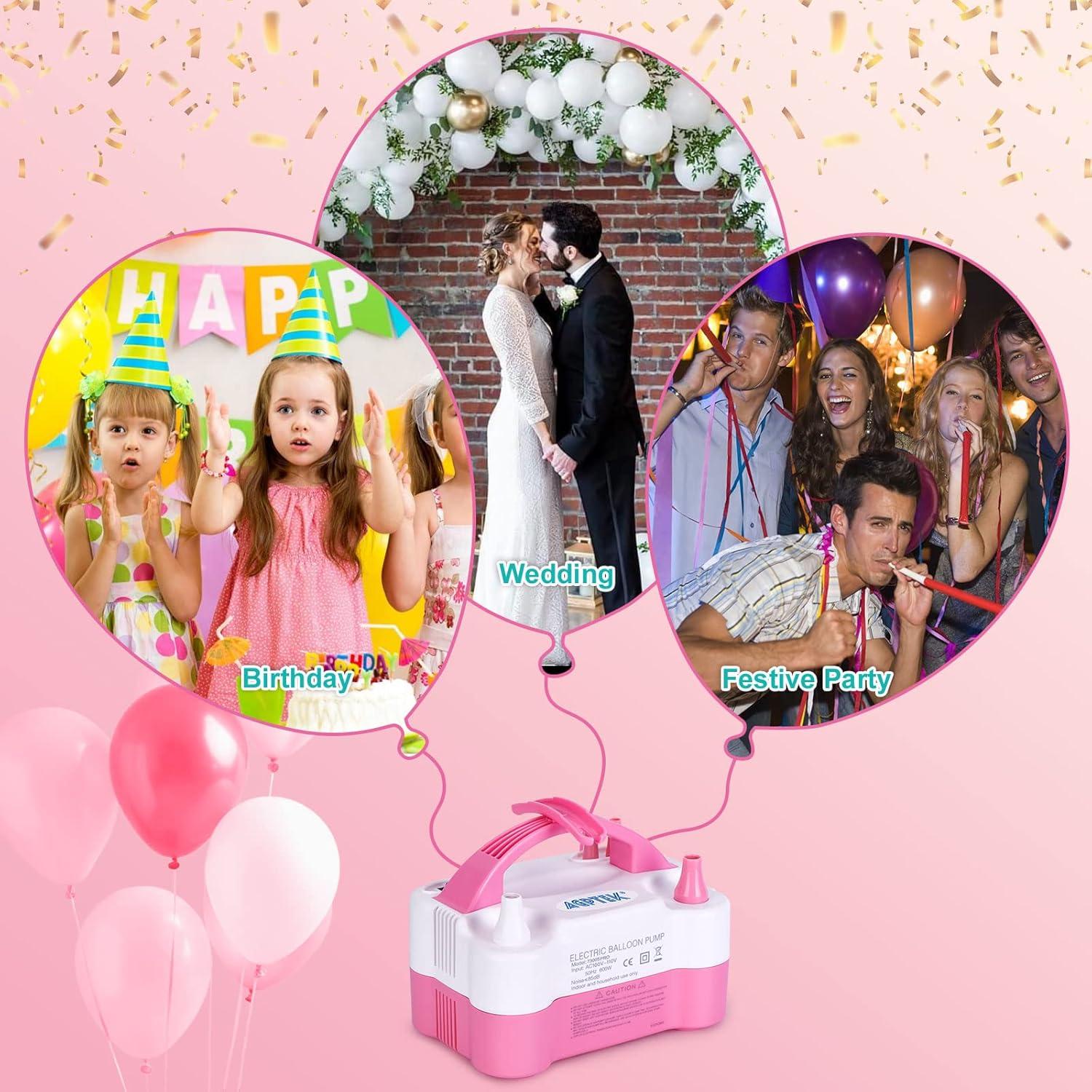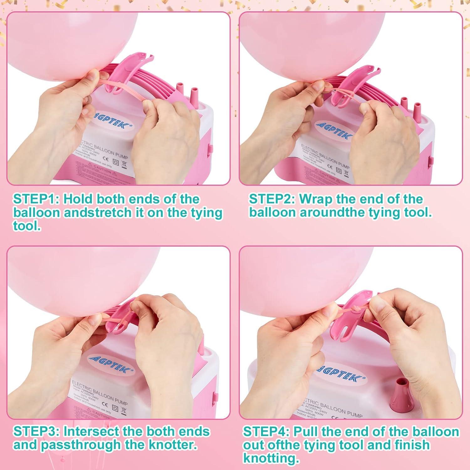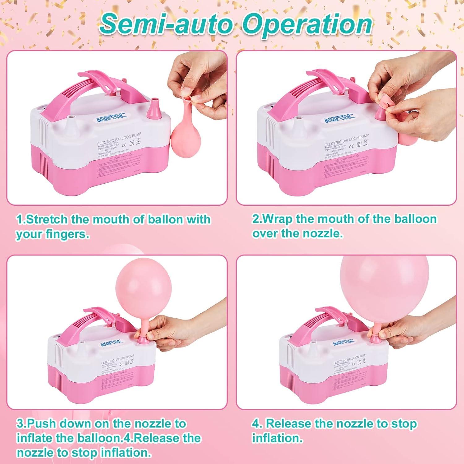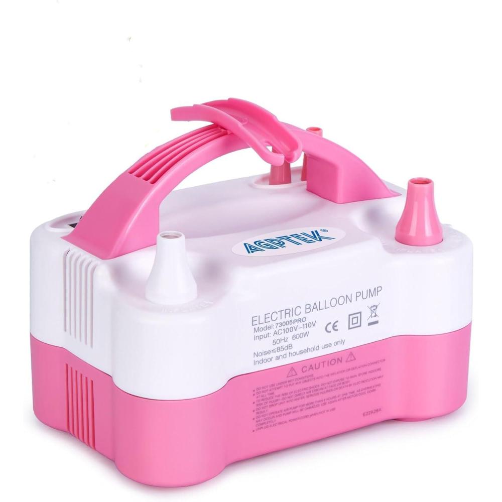AGPtEK Electric Air Balloon Pump with Built-in Tying Tool, 110V 600W Pink and White Portable Dual Nozzle Inflator/Blower for Party Decoration with Tying Tool on Handle(Balloon Pump)