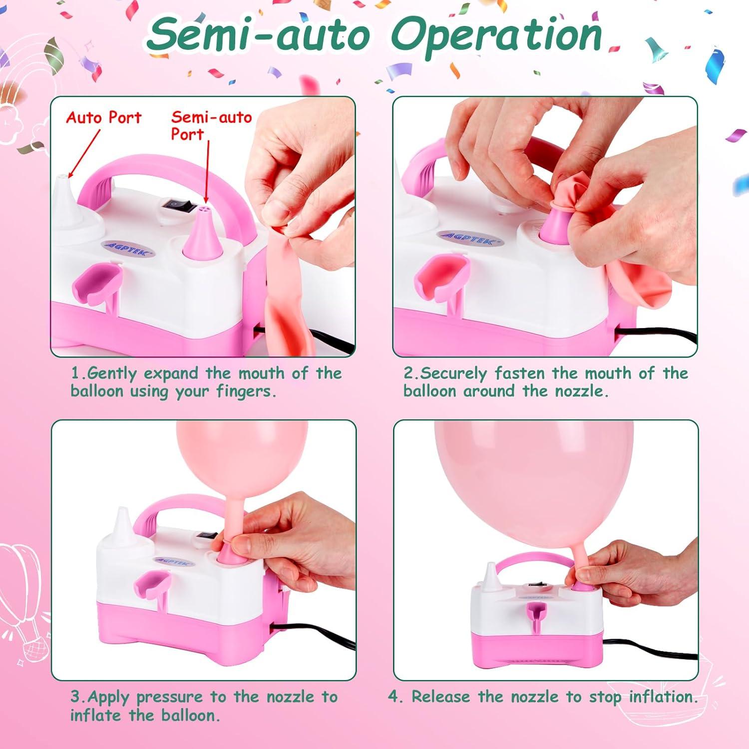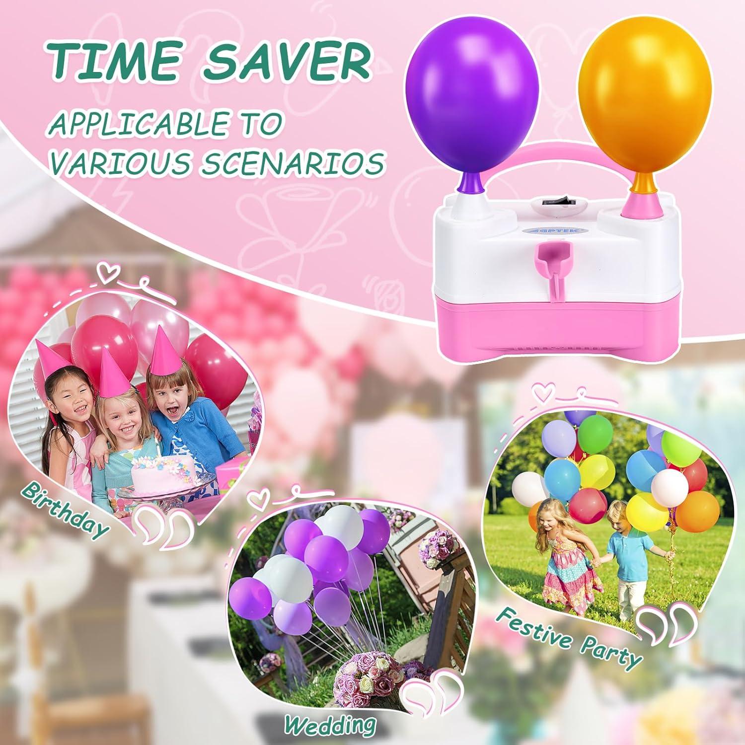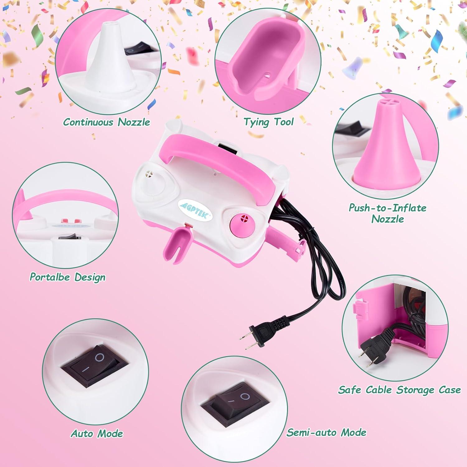 Hands-free balloon tying: This Electric Air Balloon Pump revolutionizes the balloon tying process. With its built-in balloon tying tool, you can effortlessly tie balloons directly on the tool after inflation. Simply place the balloon onto the tool and it securely holds the balloon in place while you tie the knot. This not only saves you time and effort during balloon assembly but also ensures a secure and professional-looking finish.