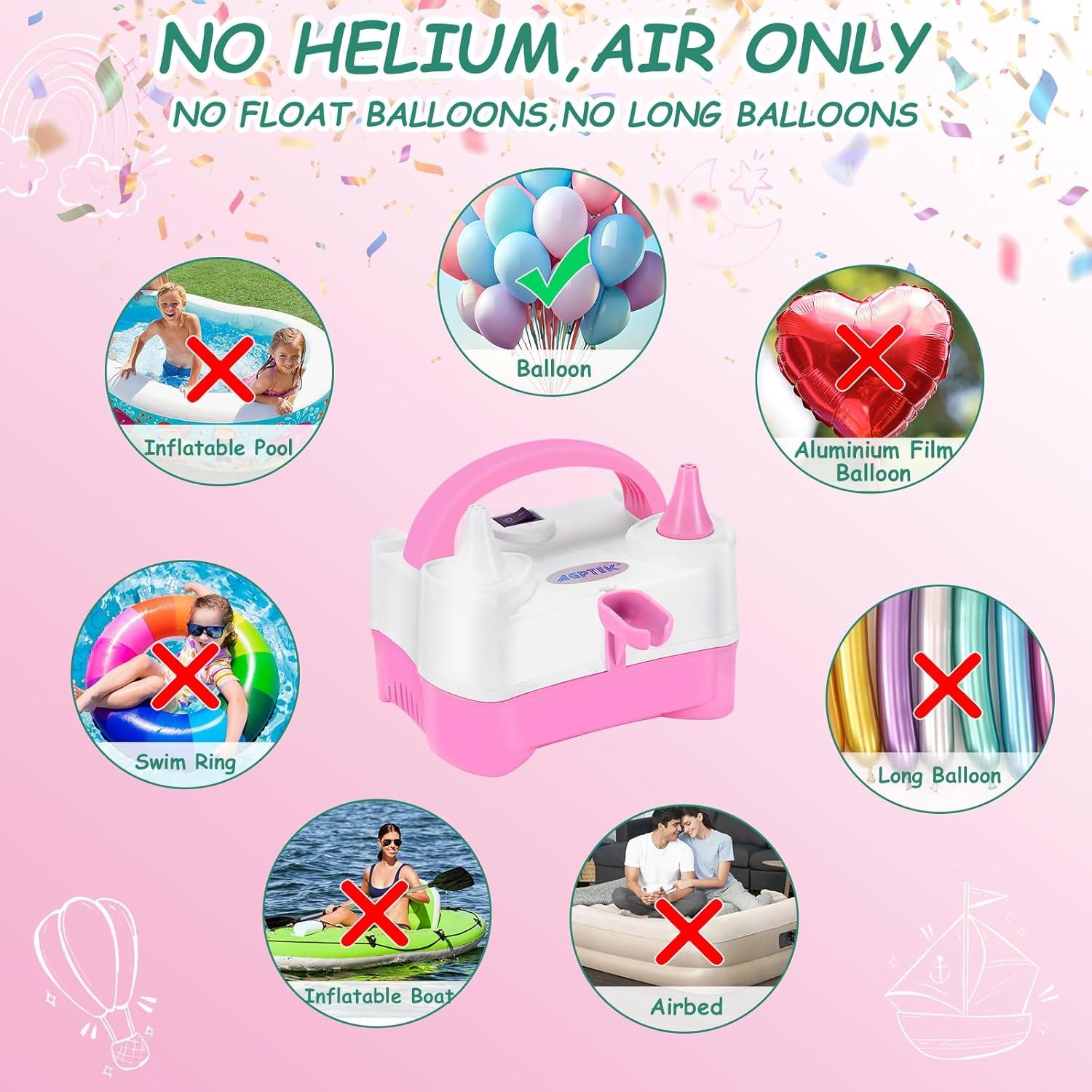 No helium required: This pump fills balloons with ordinary room air instead of helium, making them unable to float or fly. Ideal for those not looking for floating balloons.