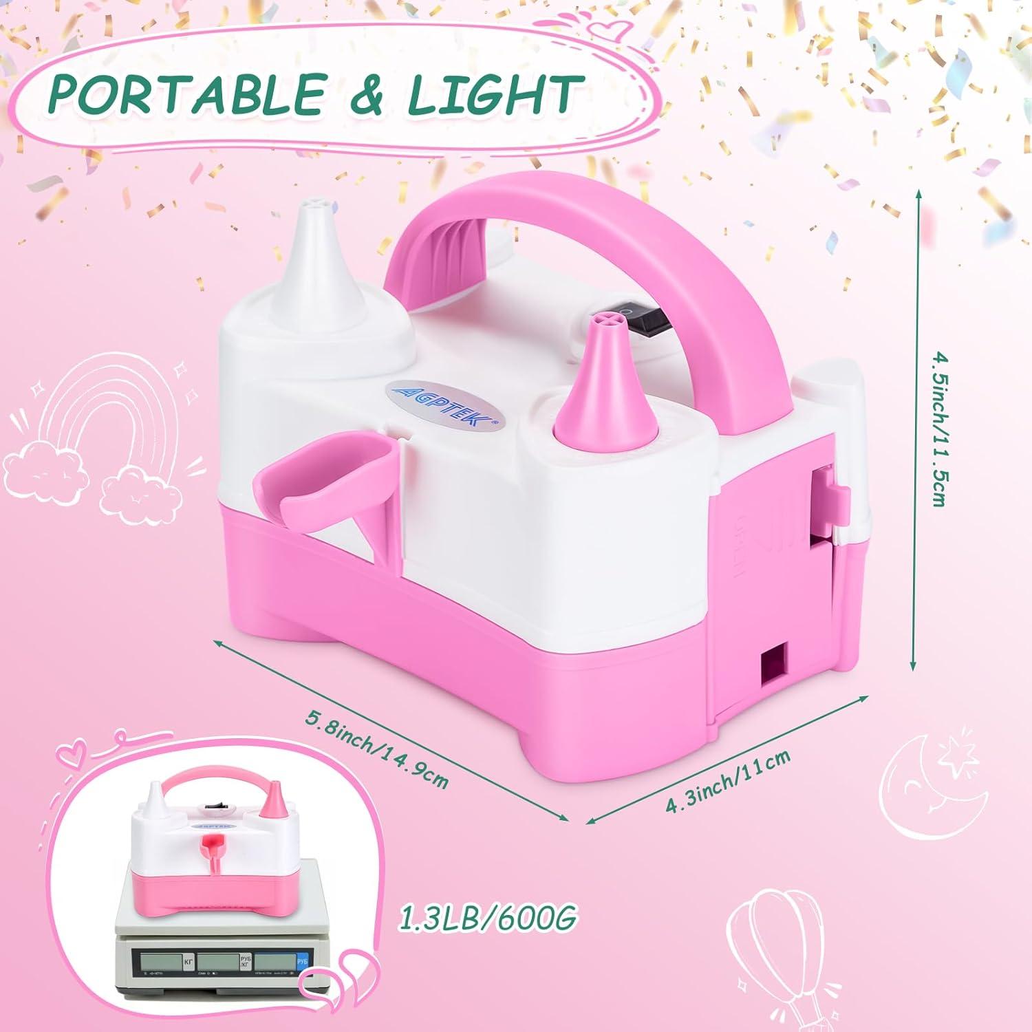 Portable design: Its compact size and lightweight construction, weighing only 1.3lbs/600g, make it incredibly easy to carry and transport. Whether you're hosting a party at home, organizing a special event at a venue, or even planning a balloon decoration setup outdoors, this pump is your perfect companion. The convenient handle ensures a comfortable grip, allowing you to effortlessly bring it along wherever you go.