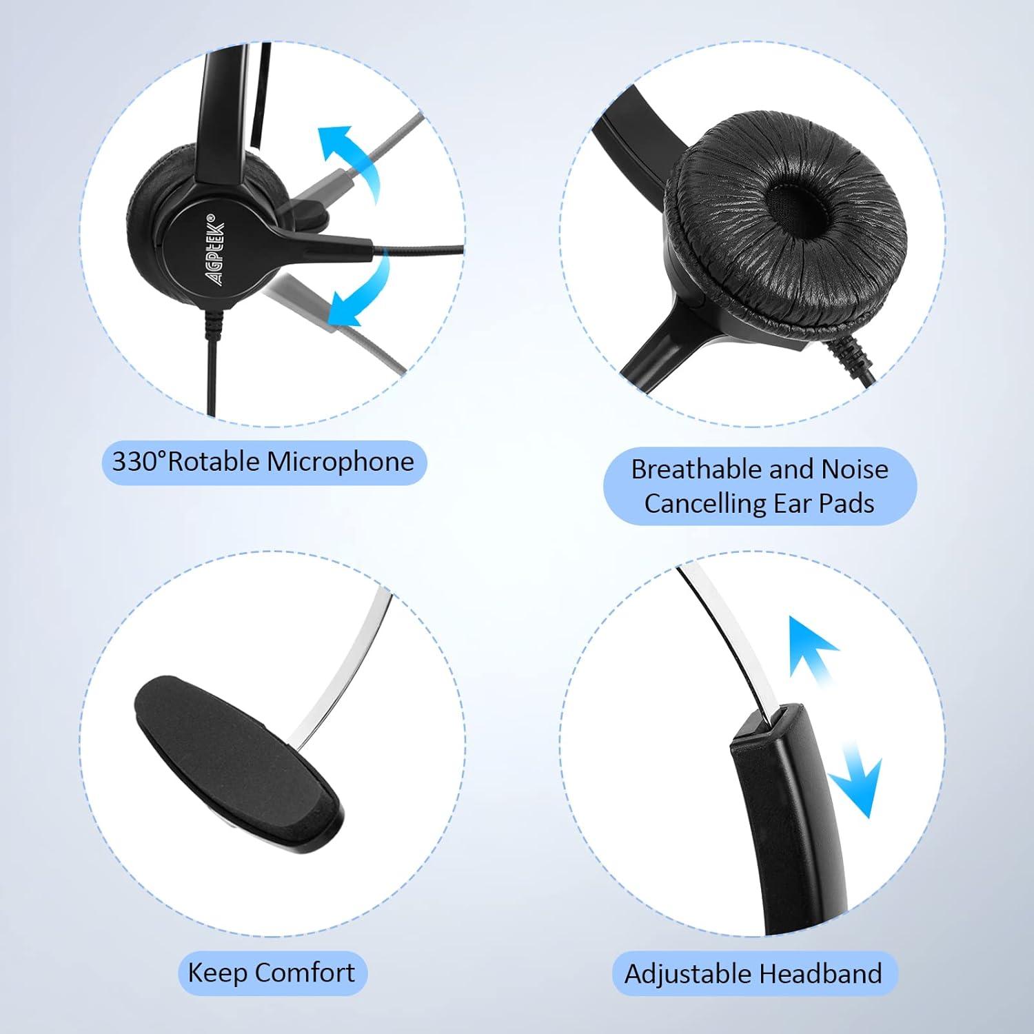 AGPTEK® 2.5mm Monaural Headset for Desk Phones, 6FT Hands-Free Noise Cancelling Headphone with Mic, Microphone, Comfort Fit Headband for Office Phones