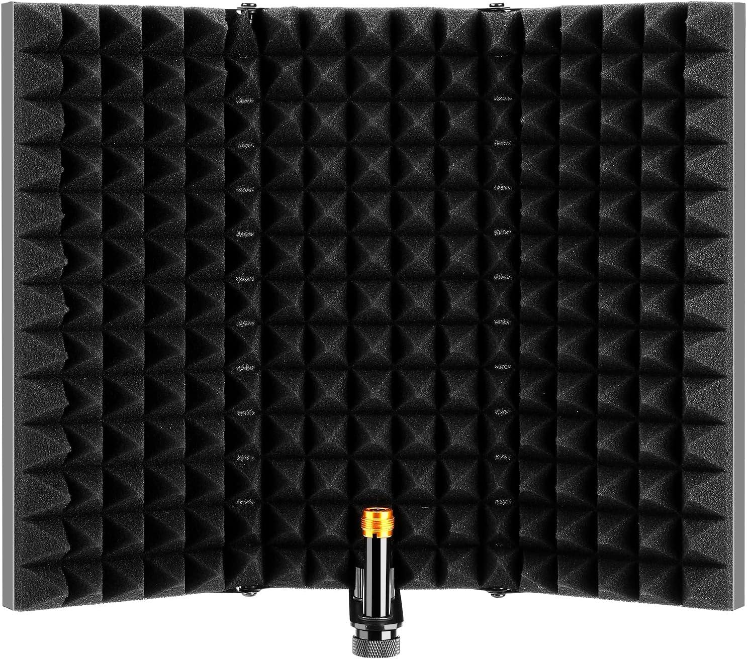 AGPTEK Microphone Isolation Shield, Foldable Adjustable Durable Studio Recording Microphone Isolator Panel for Stand Mount or Table Top