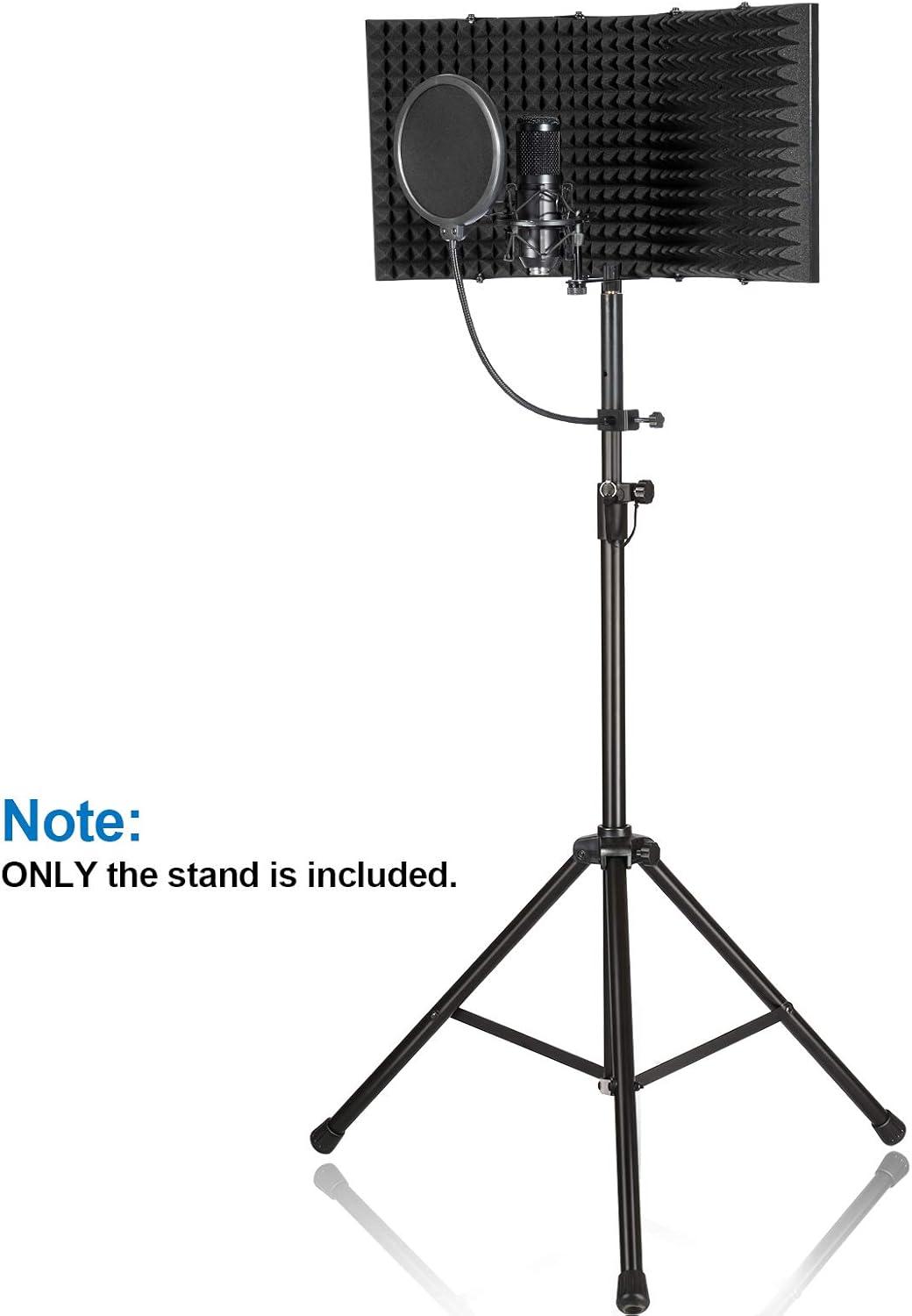 AGPTEK Microphone, Wind Screen Bracket Stand with Adjustable and Non-Slip Tripod Base, Suit for Large Microphone Isolation Shield – Black