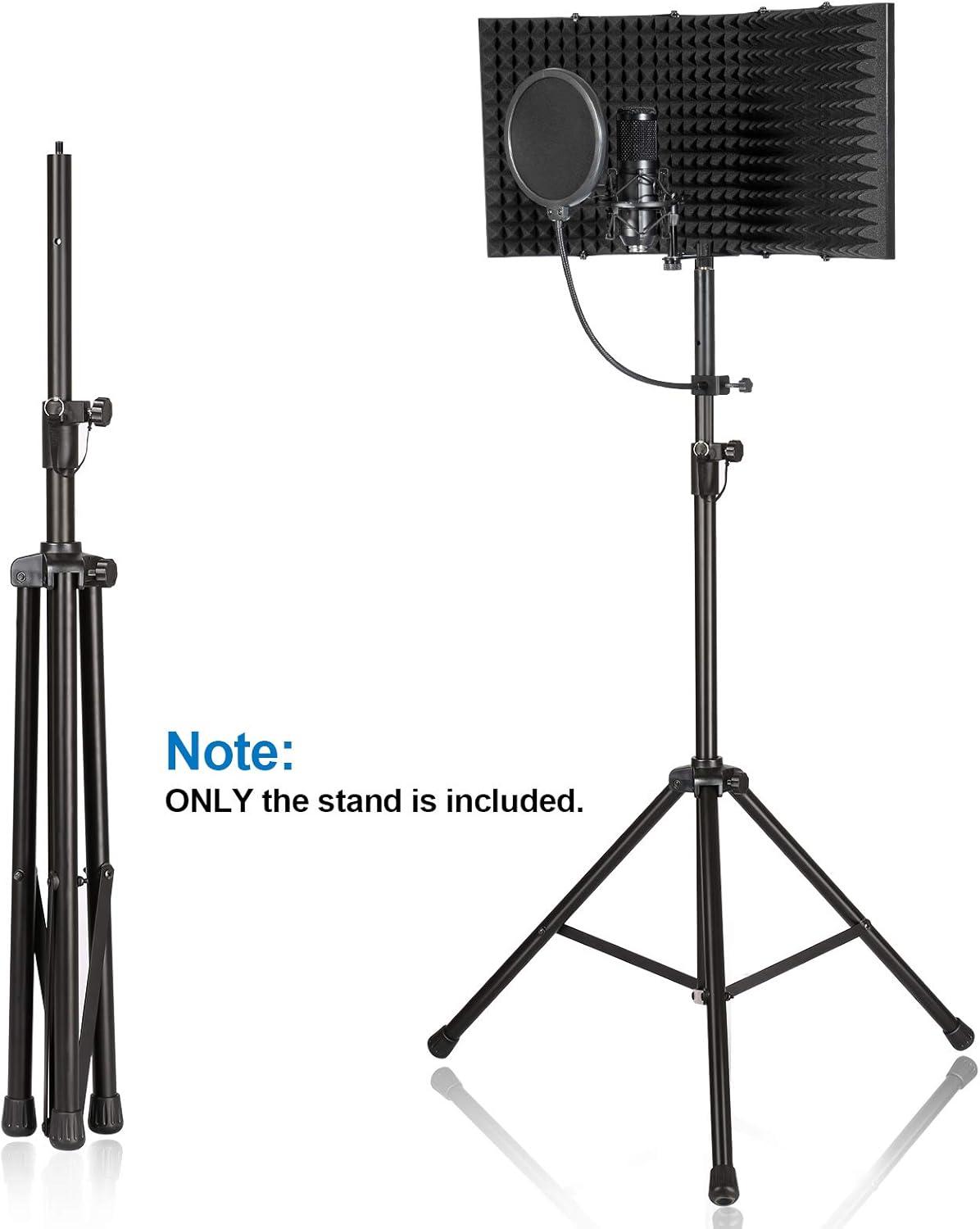Microphone Stand, AGPTEK Condenser Microphone Stand with Non-Slip Feet, Adjustable Height & Foldable Design, 33.46-68.9 inches, Suitable for Supporting Acoustic Isolation Shield in Studio (Black)