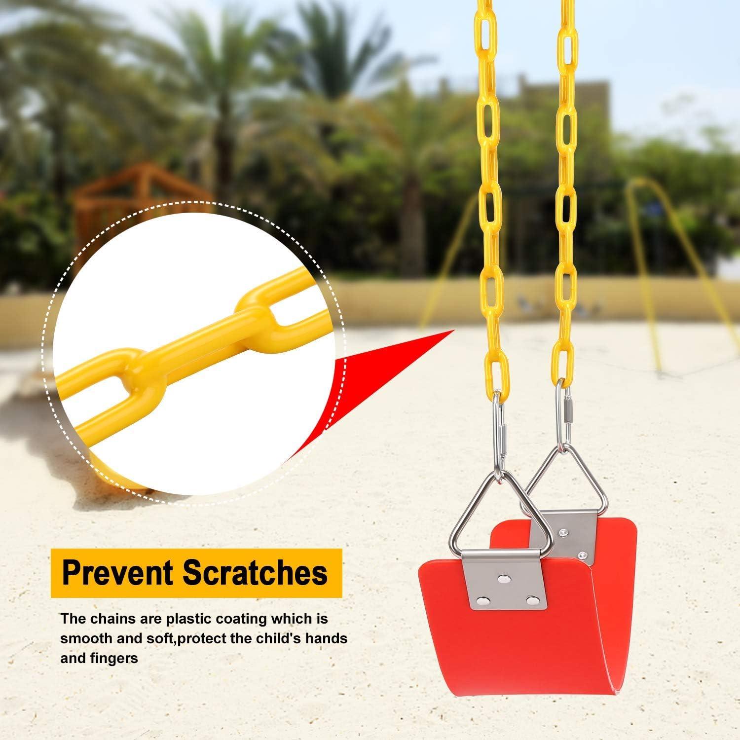 Prevent Scratches: The size of each zinc-plated chain is 66 inches long. Of which, 30 inches are covered with thermoplastic, soft and comfortable for children to touch and protect their fingers.