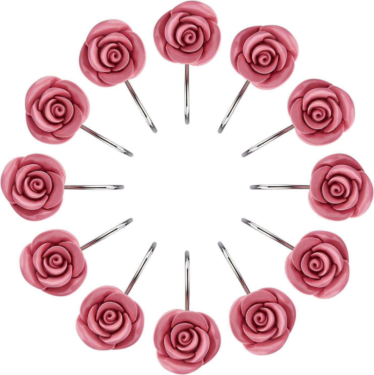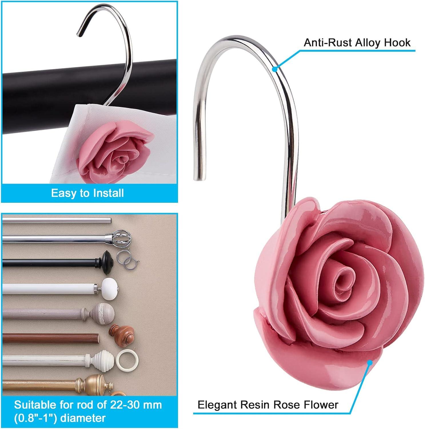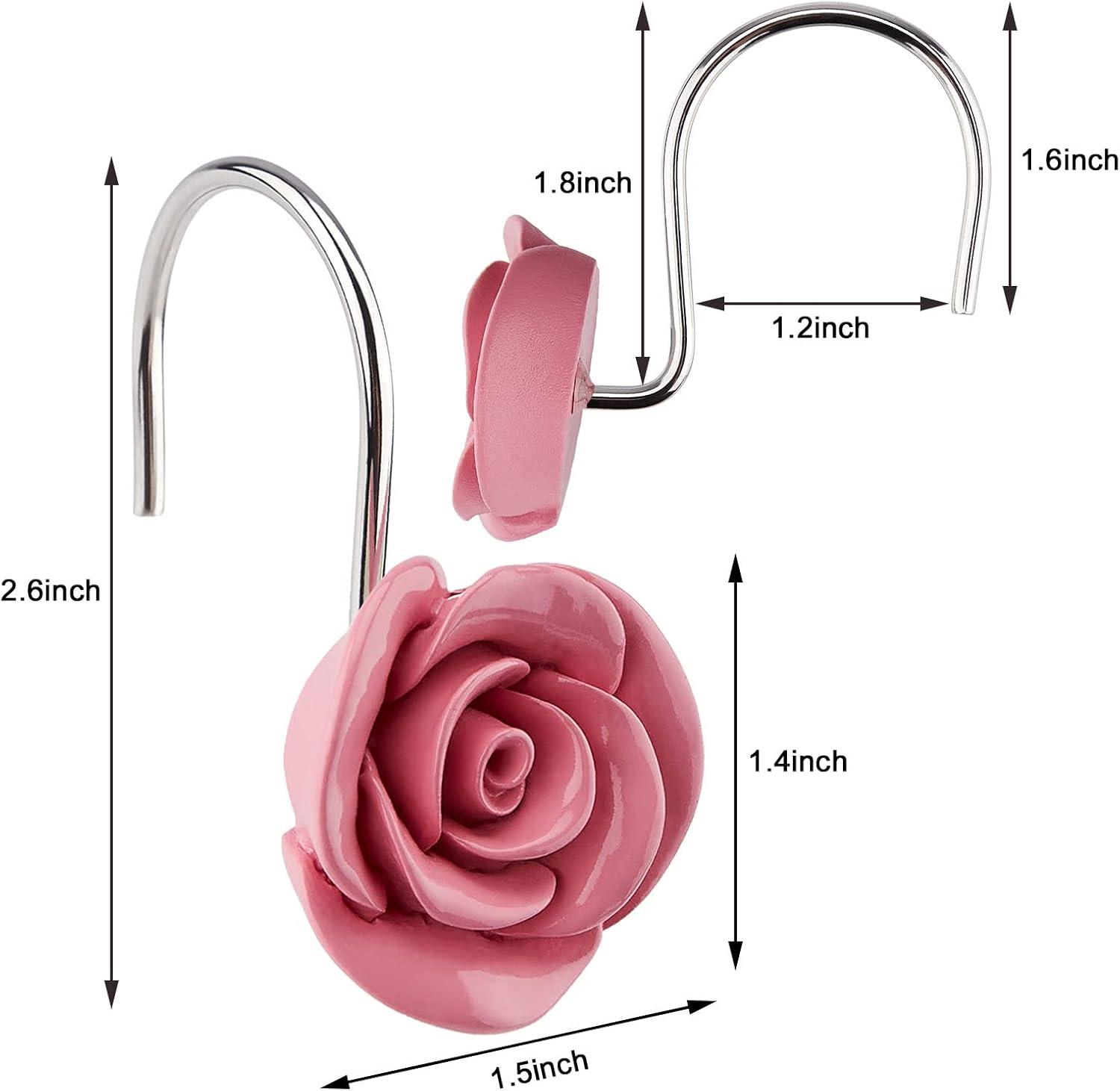 ♦ Set of 12 PCS Shower Curtain Hooks — This package includes 12pcs shower curtain hooks, Anti-rust alloy hook and Acrylic pink color rose.