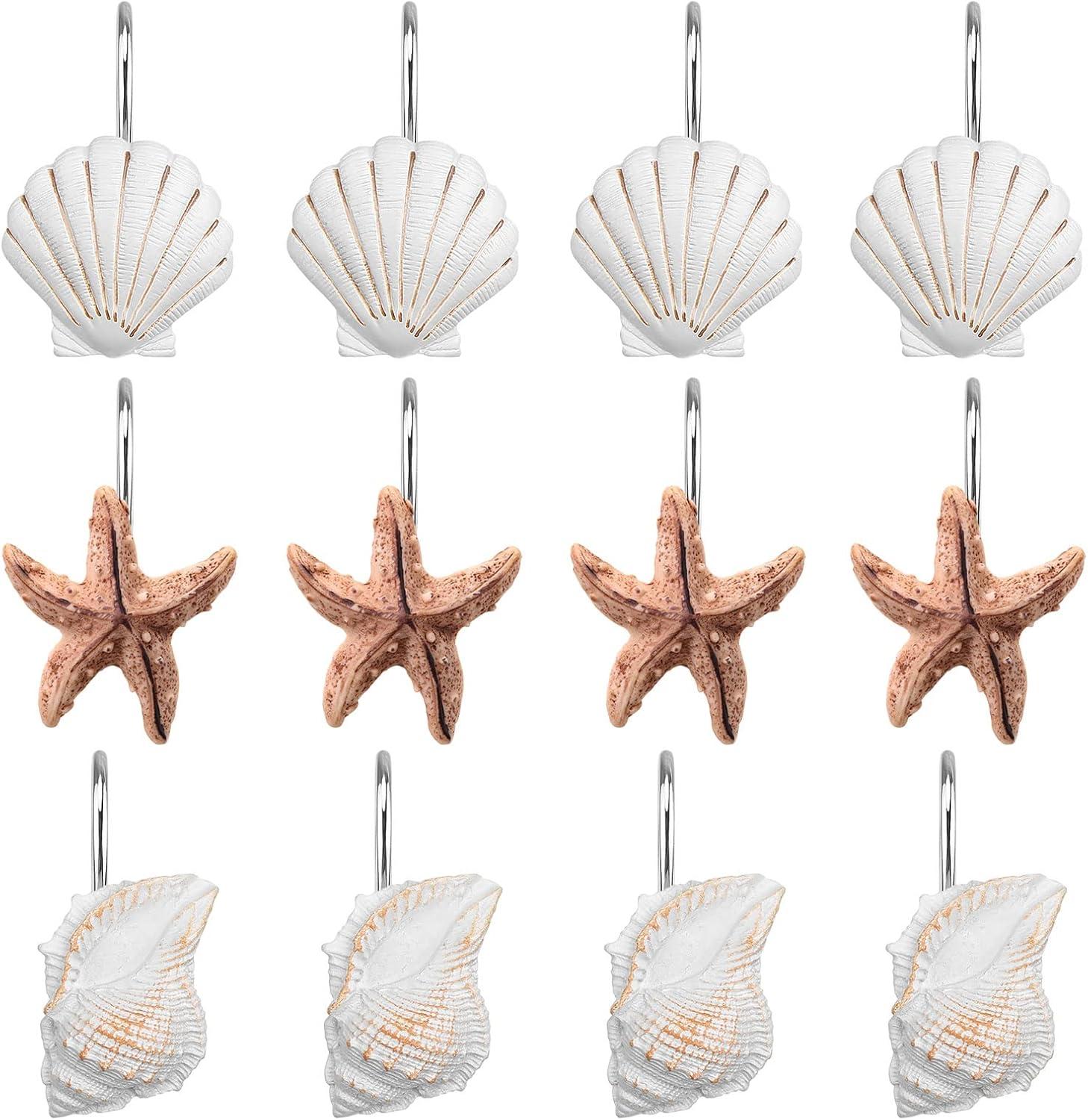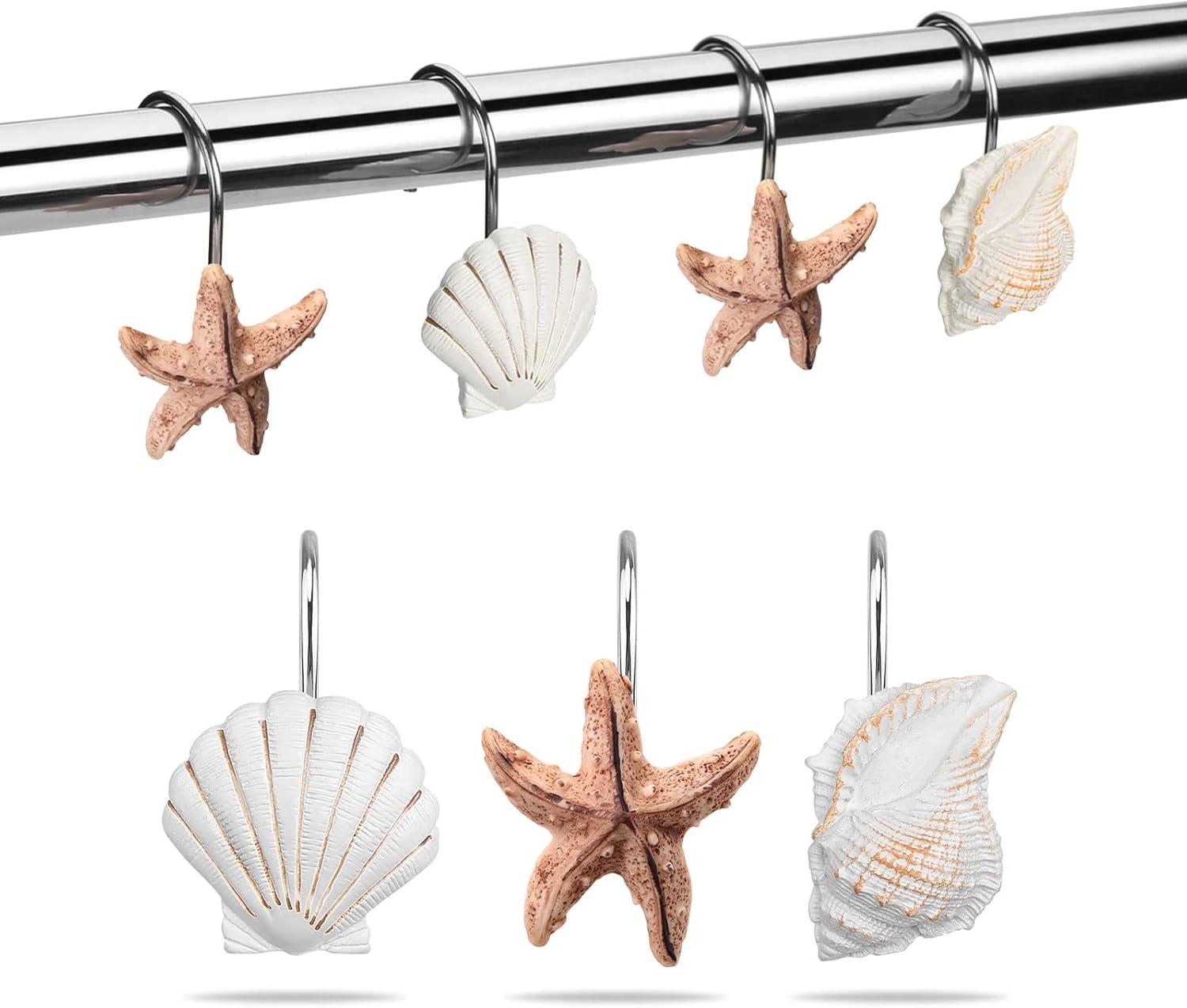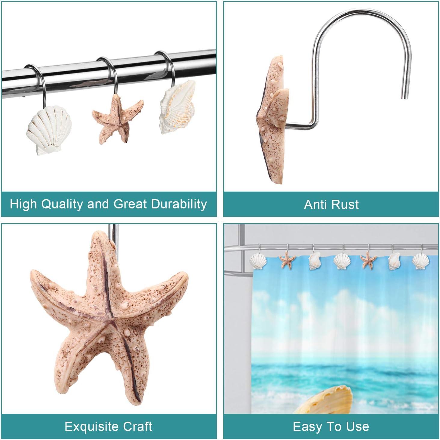 imageAGPtek Seashell Shower Curtain Hooks 12PCS Anti Rust Decorative Resin Hooks for Bathroom Baby Room Bedroom Living Room Decor Blue SeashellBlue