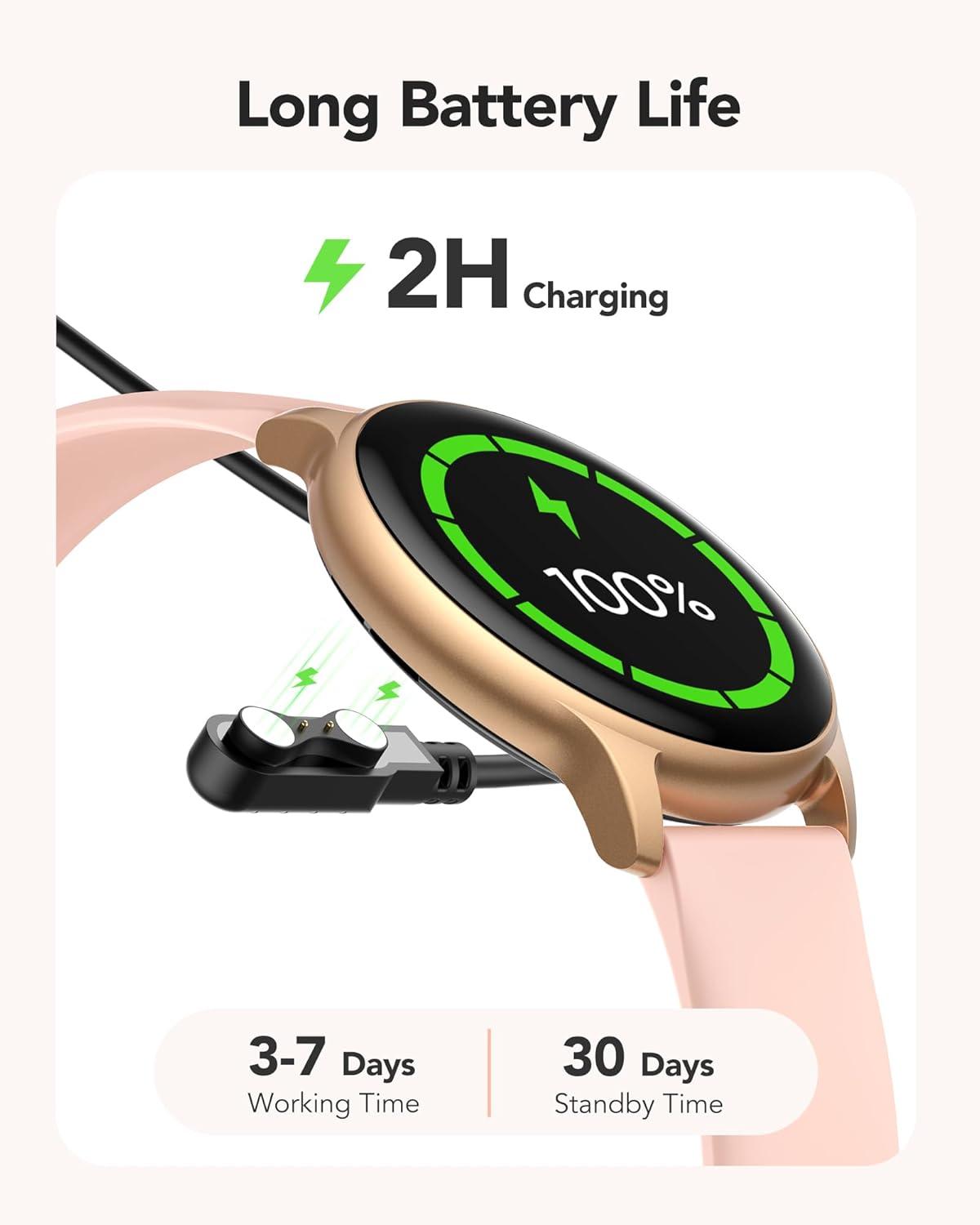 AGPTEK Smart Watch for Women(Answer/Make Calls) – Smartwatch for Android iOS Phones with Heart Rate Sleep Monitor Step Counter, Fitness Tracker Watch with 100+ Sports Modes, Pink(Pink)