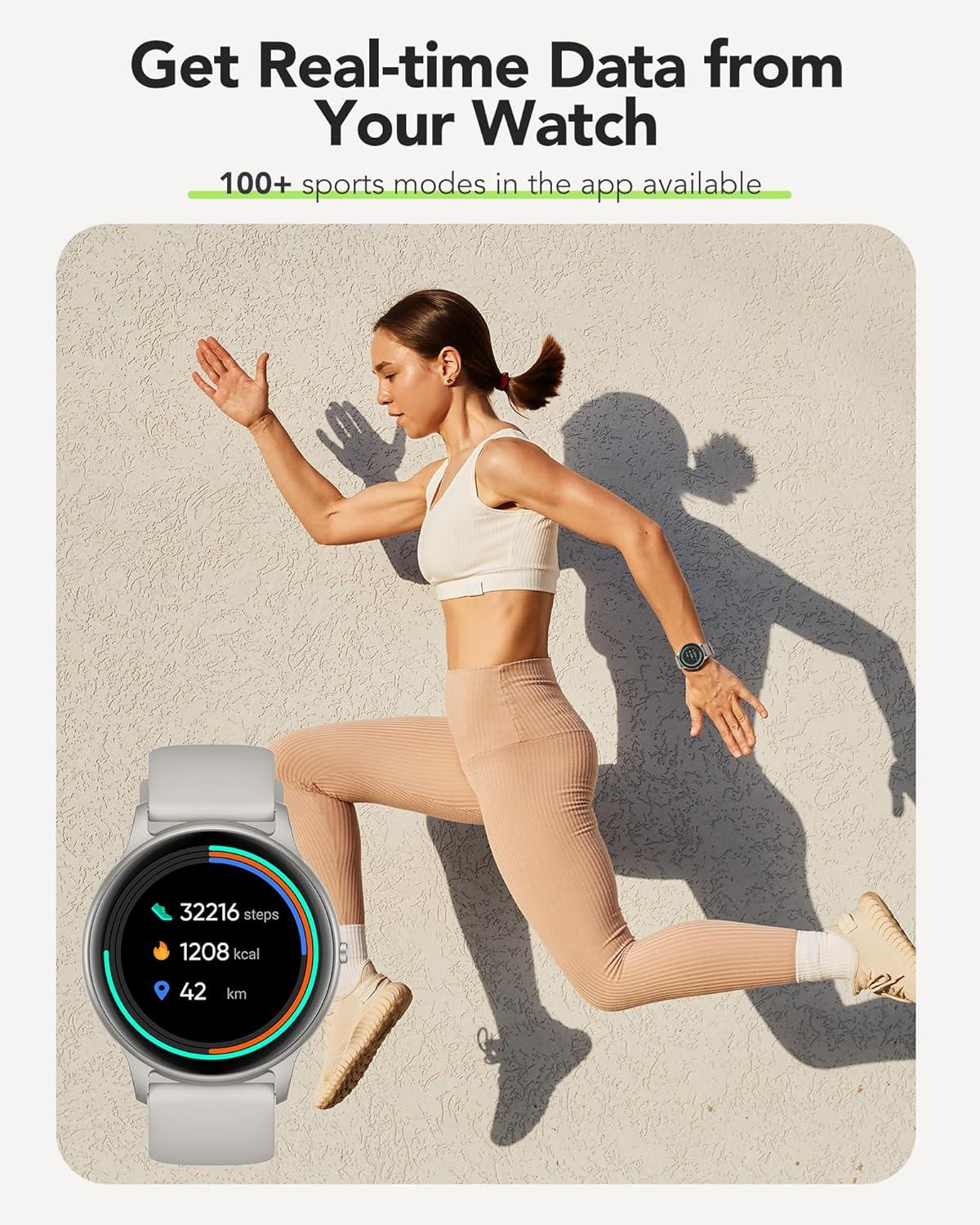 【100+ Sports Modes to Explore】Built-in 10 sports modes and offer the flexibility to customize 6 additional modes through our app. With over 100+ choices, including walking, running, cycling, basketball, jump rope, football, badminton, and many more, you'll find the perfect activity to suit your fitness needs. Keep track of your distance, monitor your heart rate, and track your calorie consumption goals, enabling you to gain valuable insights into your workout and progress.
