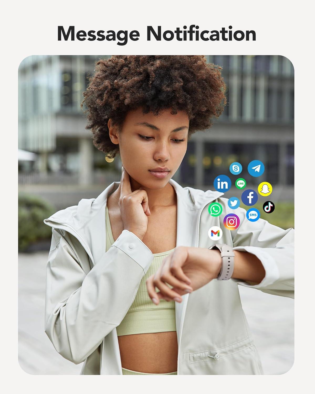 【Smart Notification from Wrist】Raise your wrist to get real-time notifications from social apps such as Instagram, Youtube, Twitter and LinkedIn. NOTE: the watch doesn't support texting back. Please give the app “notification permission”, and always keep the app running in the background of the mobile phone to get a better user experience! This smartwatch also makes for the perfect gift for festive occasions like Christmas, birthday celebrations, Mother's Day, and wedding anniversaries!