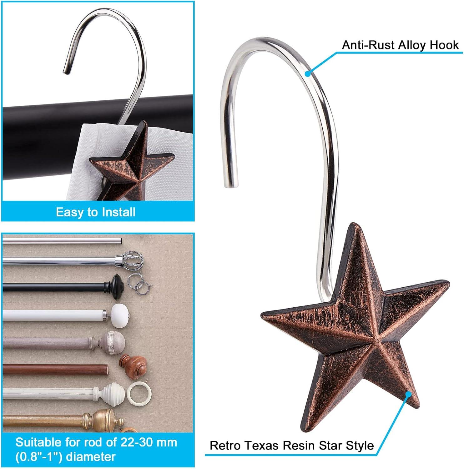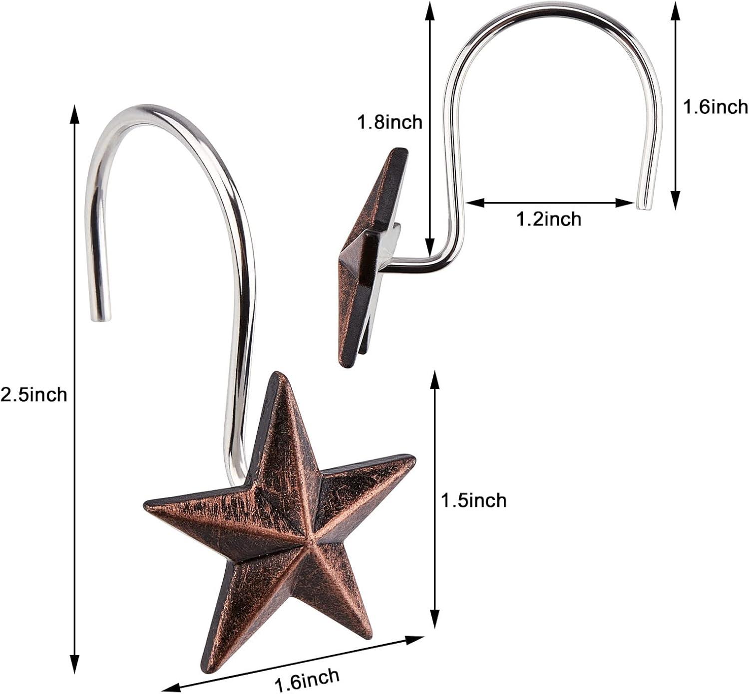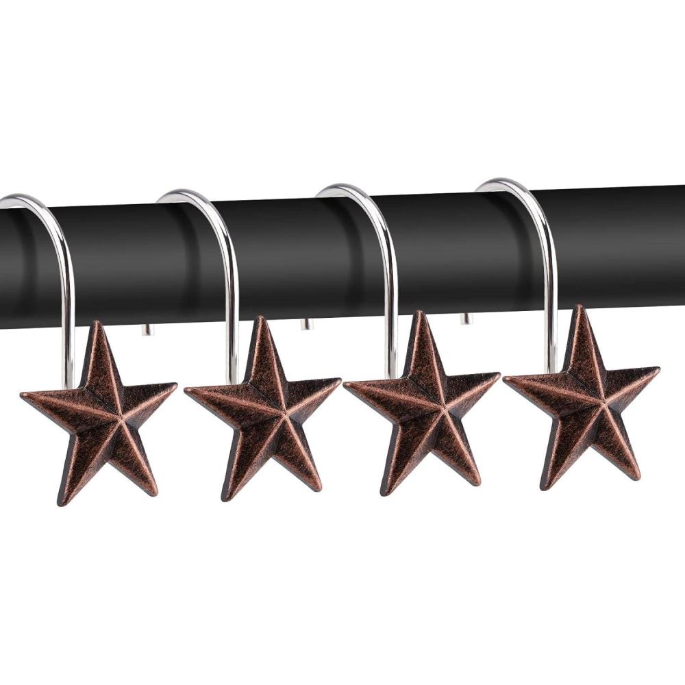 ♦ Set of 12 PCS Shower Curtain Hooks — This package includes 12 pcs shower curtain hooks with beautiful resin star.
