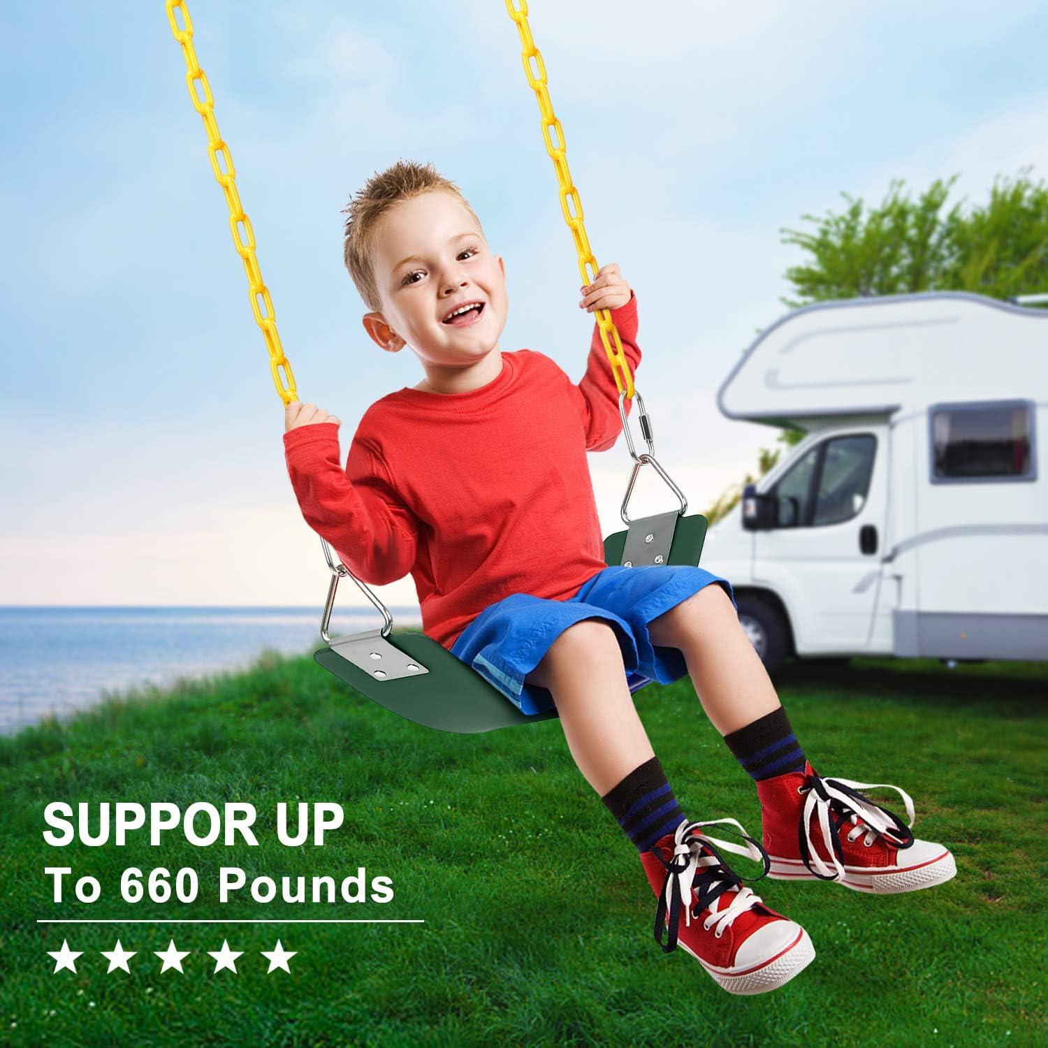 AGPTEK Swing Set, Seat with 66 Inch Anti-Rust Chains Thermoplastic Coated, Support 250lb, Cushion Accessories Replacement with Snap Hooks for Outdoors, Playground, Jungle & Gym – Black(Green)