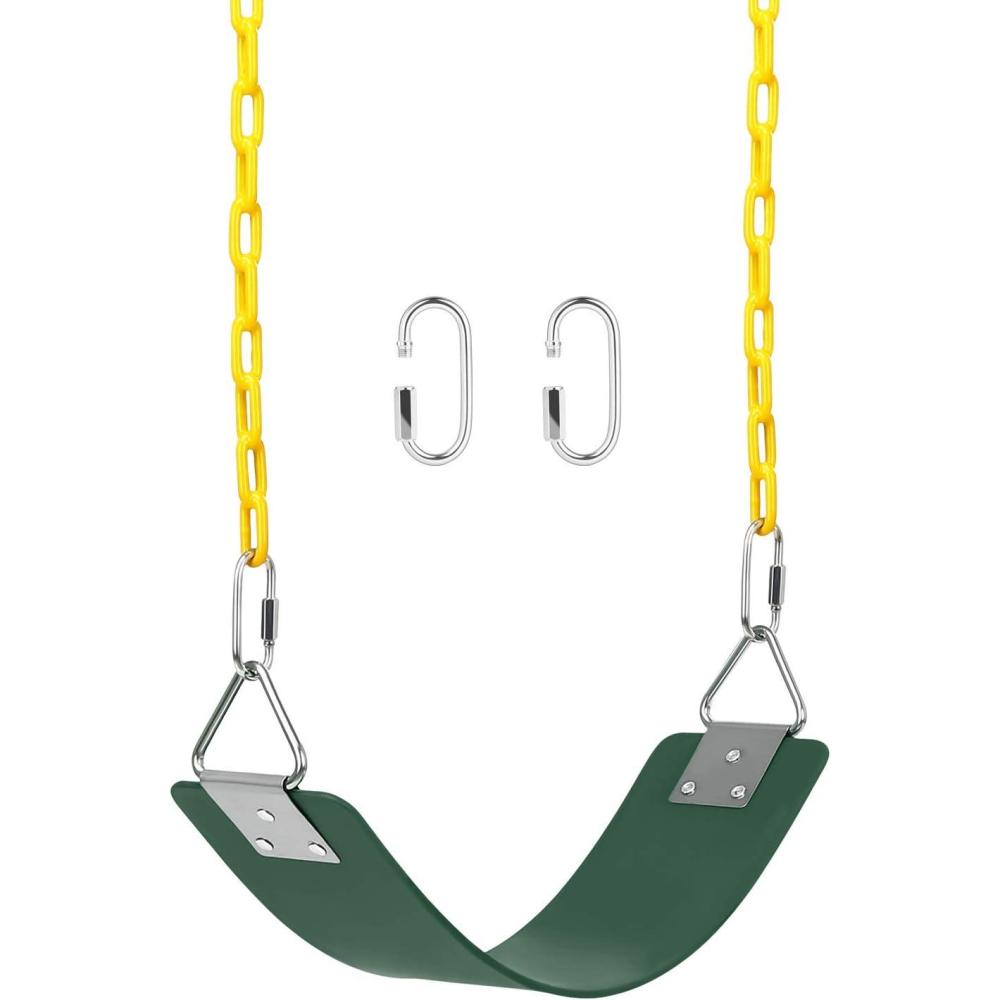 AGPTEK Swing Set, Seat with 66 Inch Anti-Rust Chains Thermoplastic Coated, Support 250lb, Cushion Accessories Replacement with Snap Hooks for Outdoors, Playground, Jungle & Gym - Black(Green)