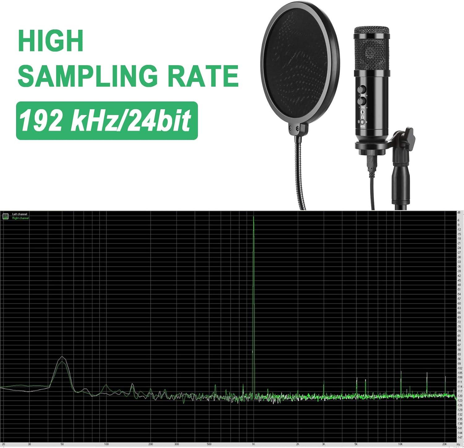 PROFESSIONAL SOUND CHIPSET: This type of USB microphone is designed by a professional sound chipset, which maintains the mic at a high resolution and sampling rate. The sampling rate is 192kHz/24bit. The smooth frequency 30Hz-16kHz is way suitable for singing, speech and voiceover and thus, putting your voice in a perfect acoustic environment.