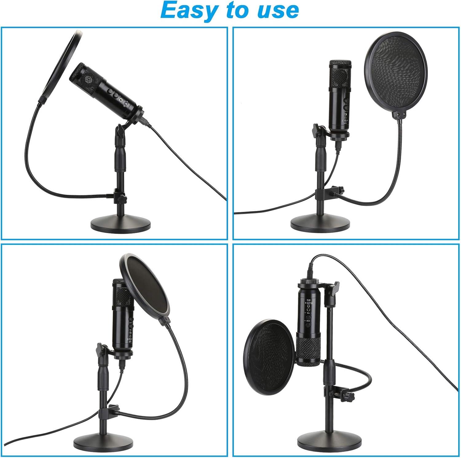 COMPLETE SET: Our USB microphone kit includes a complete accessory, e.g. 1*USB microphone, 1*table Mic stand, 1*pop filter, 1*wind foam and 1*USB-B to USB-A cable. There is no doubt that they are perfect for all sorts of stereo equipment, e.g. karaoke, Youtube, Skype, Podcast, live broadcast and gaming recording.