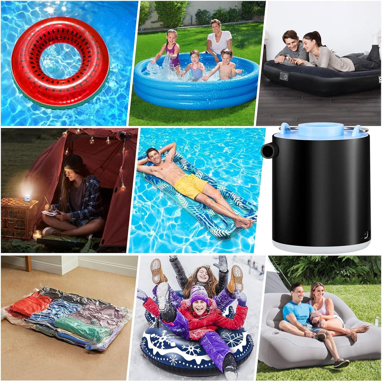 POWERFUL INFLATION/DEFLATION: Our mini air pump possesses a powerful inflation/deflation function. The wind speed can reach up to 180L/min and the highest air pressure is 3.5kPa, which can be more effective than other similar products on the market. You can use it to inflate any inflatable products within several minutes. (The specific time depends on the size of the item being inflated.)