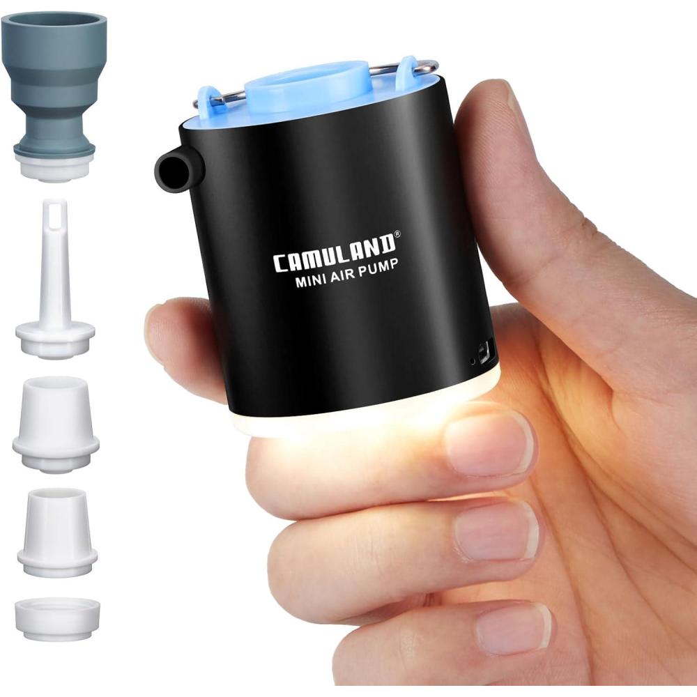 Introducing the CAMULAND Mini Air Pump, a portable and rechargeable solution for inflating your air mattress, pool floats, and vacuum storage bags. This lightweight pump comes with 5 nozzles to accommodate various inflatable products, making it a versatile tool for camping, travel, or home use. The 1300mAh battery provides reliable power and is USB rechargeable for added convenience. With its compact design and included nozzles, the CAMULAND Mini Air Pump is a must-have for anyone who wants to save time and effort when inflating their inflatable products.