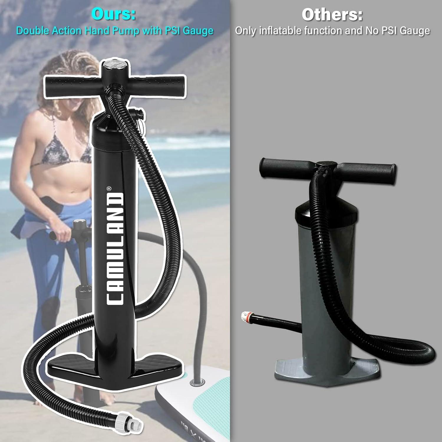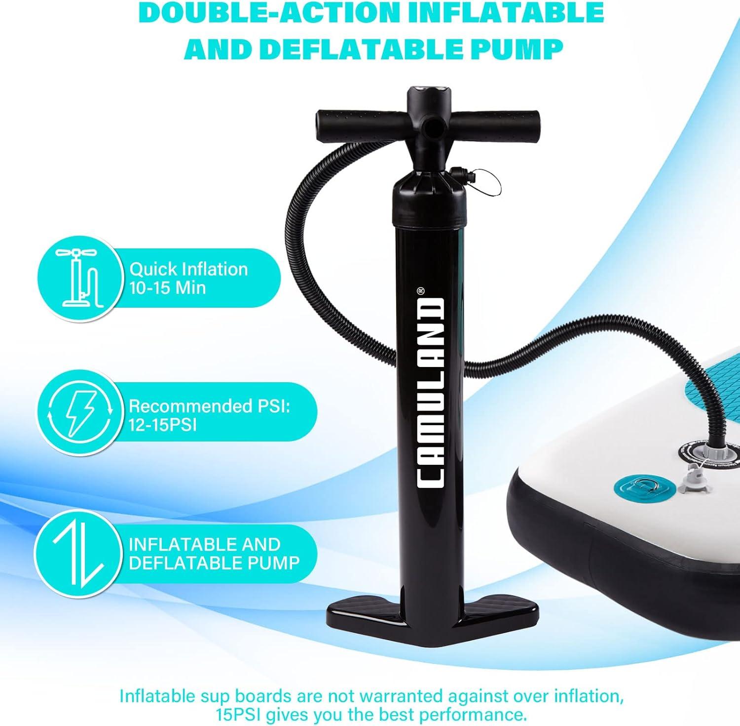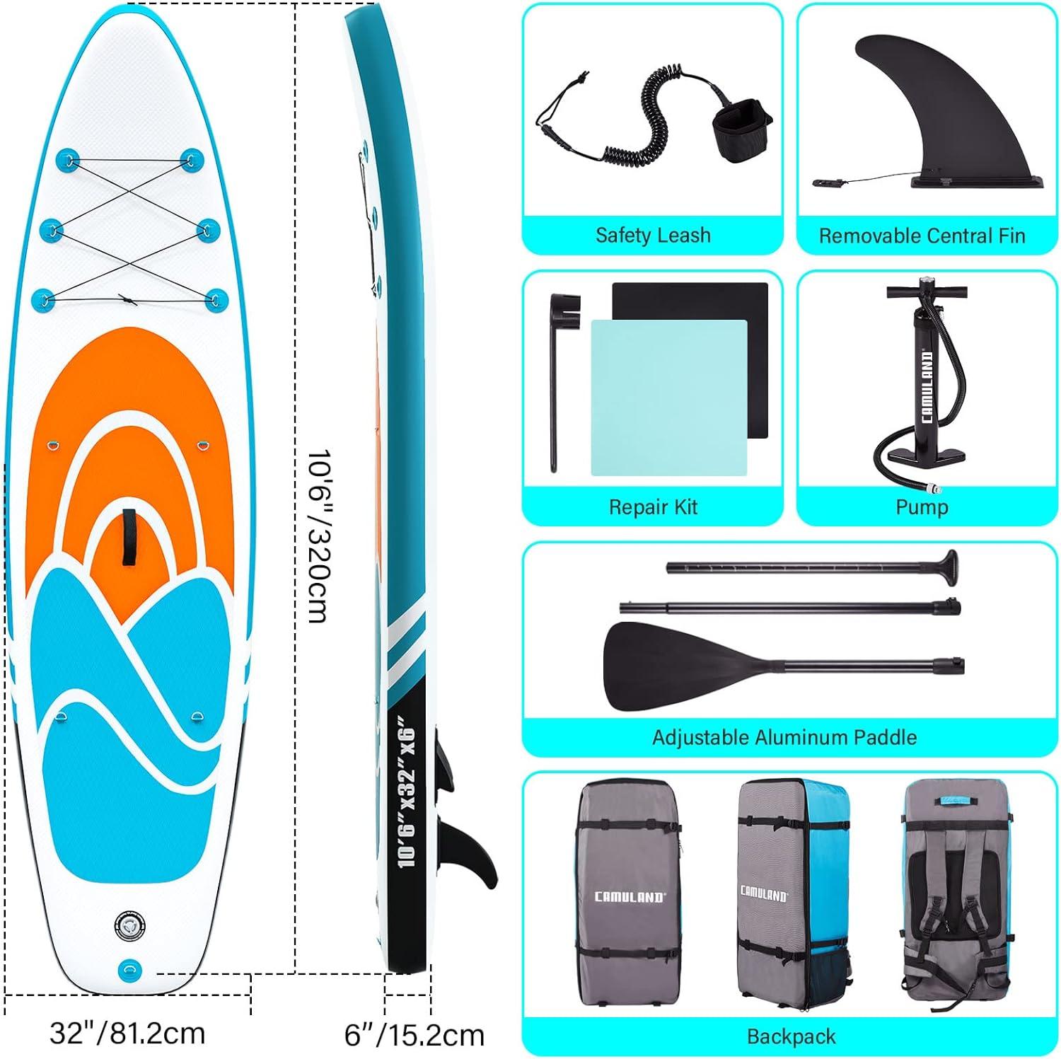 🌊COMPLETE SET: The package includes everything you need for paddling: a stand-up paddle board; a collapsible and adjustable floating paddle, which is aluminum material and never sinks into the water; an inflatable hand pump with PSI gauge; a removable fin for better balance, 10ft ankle-coiled leash, a repair kit and a large carrying backpack.