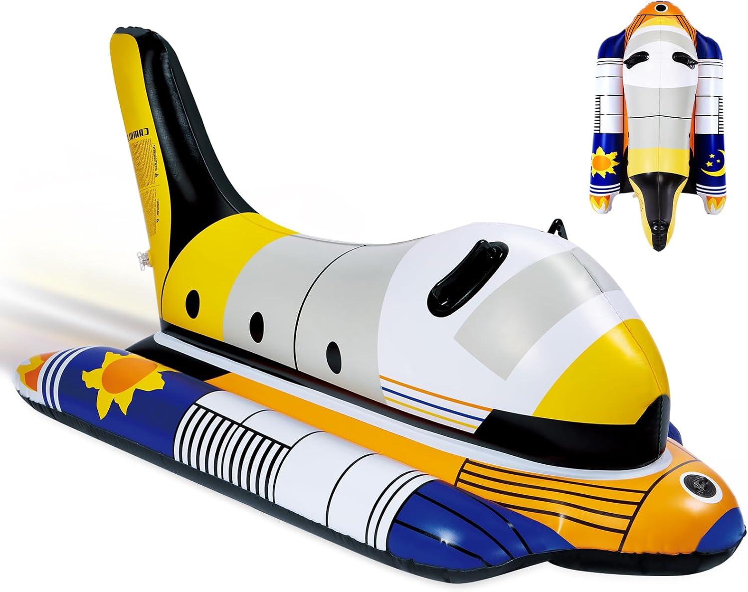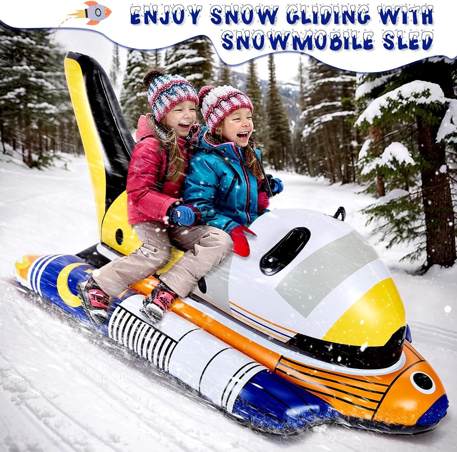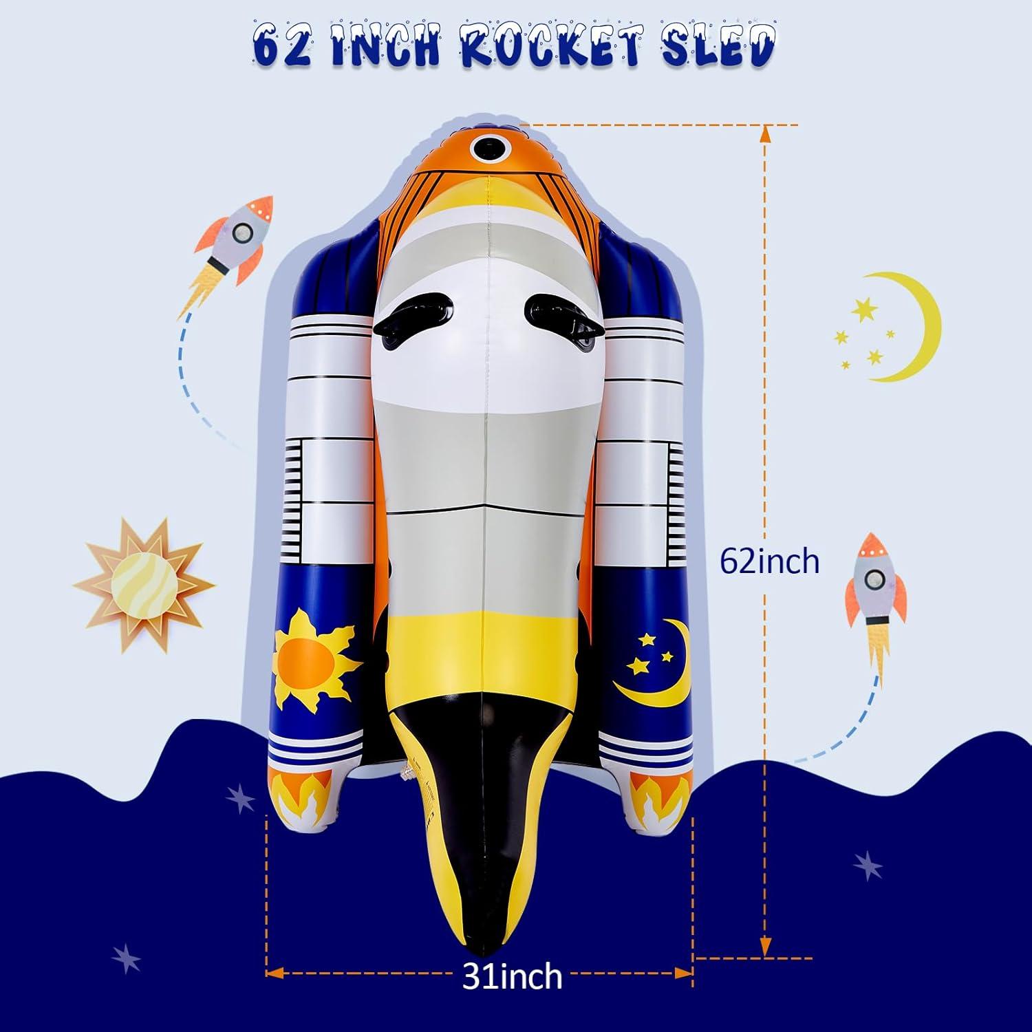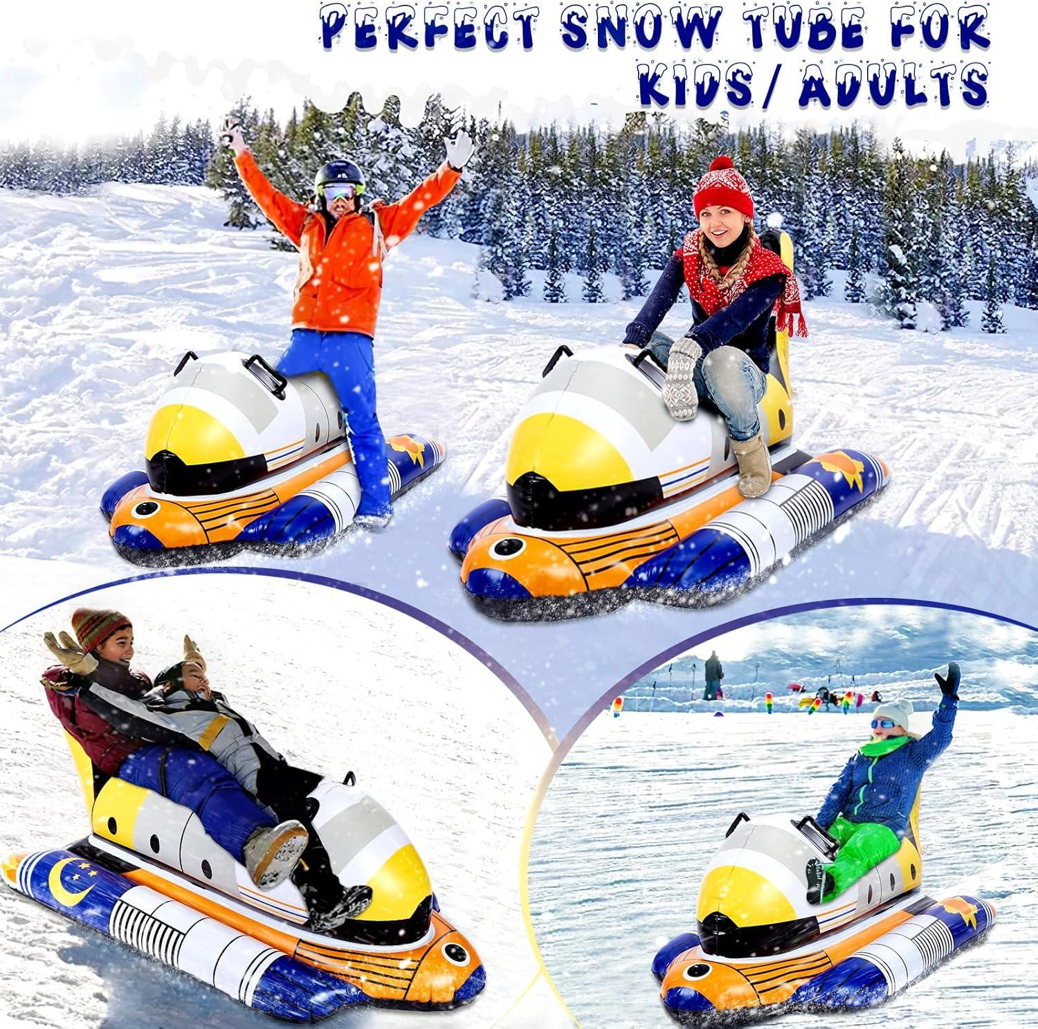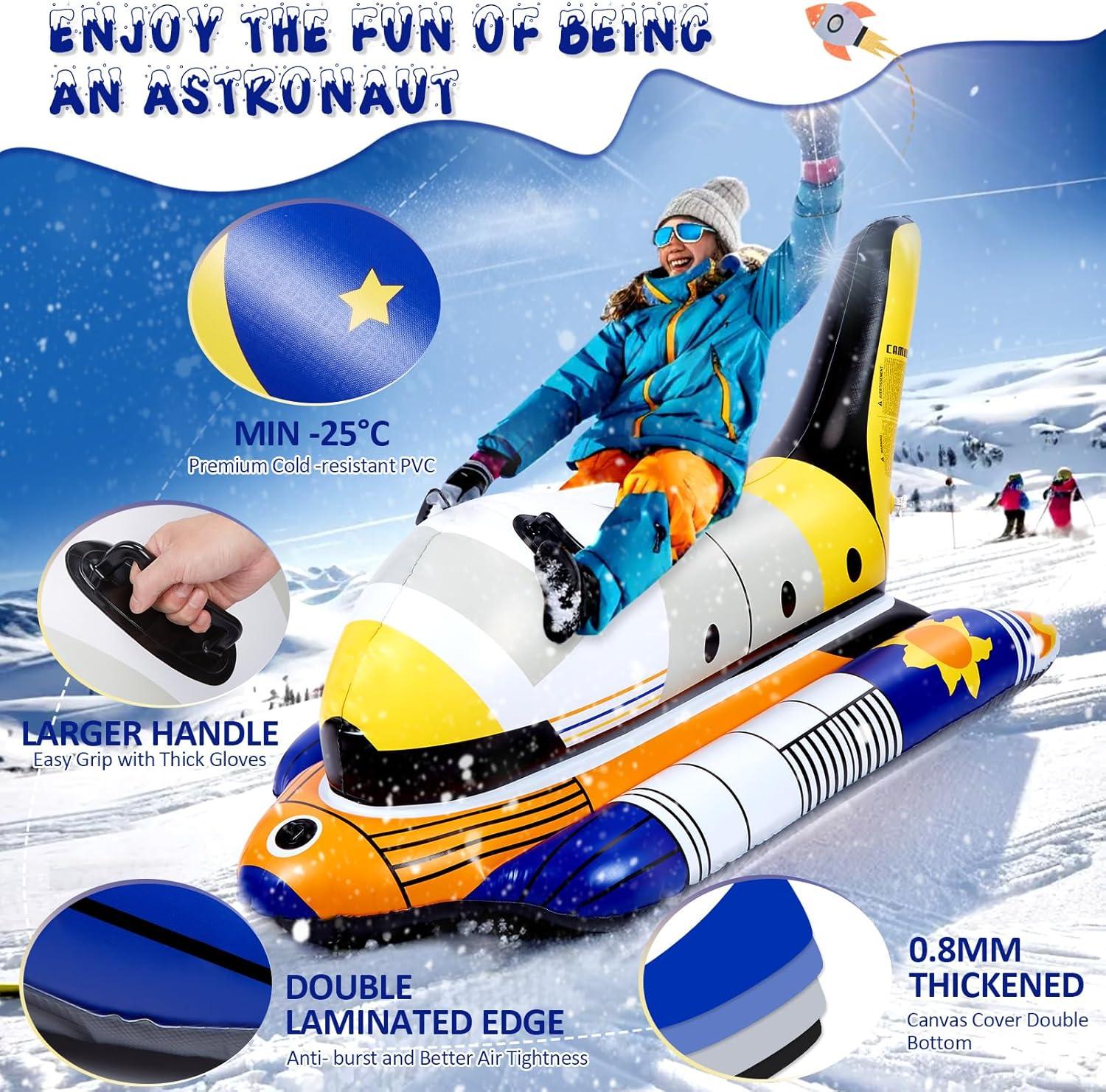 Unique Design: Get ready to embark on a cosmic adventure with our snow tube's rocket-inspired design. The stylish and vibrant colors immediately attract attention, while the exquisite pattern designs and exceptional seam craftsmanship add texture and imagination. It is designed to ignite the interest and curiosity of both children and adults, offering an opportunity to explore the universe. Perfect as a birthday, Thanksgiving, or Christmas gift, it adds a special joy to winter.
