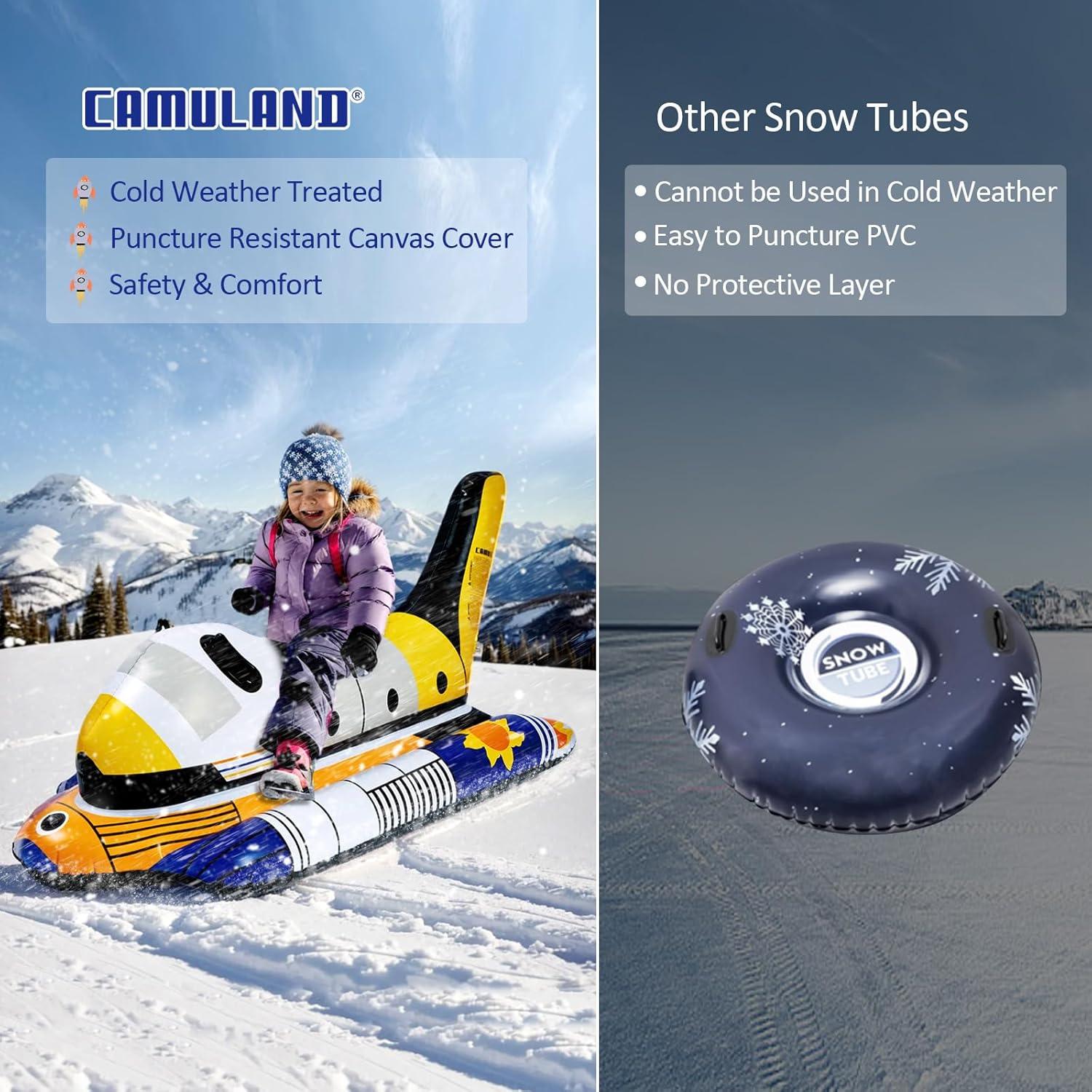 Explore the Universe: With our CAMULAND Snow Tube, you take on the role of a future astronaut ready to explore the vastness of space. It not only provides entertainment but also encourages imagination and a sense of wonder. Let your little ones dive into a world of imagination and curiosity, fueling their passion for exploration. Prepare for an unforgettable journey of sledding adventures with our snow tube.