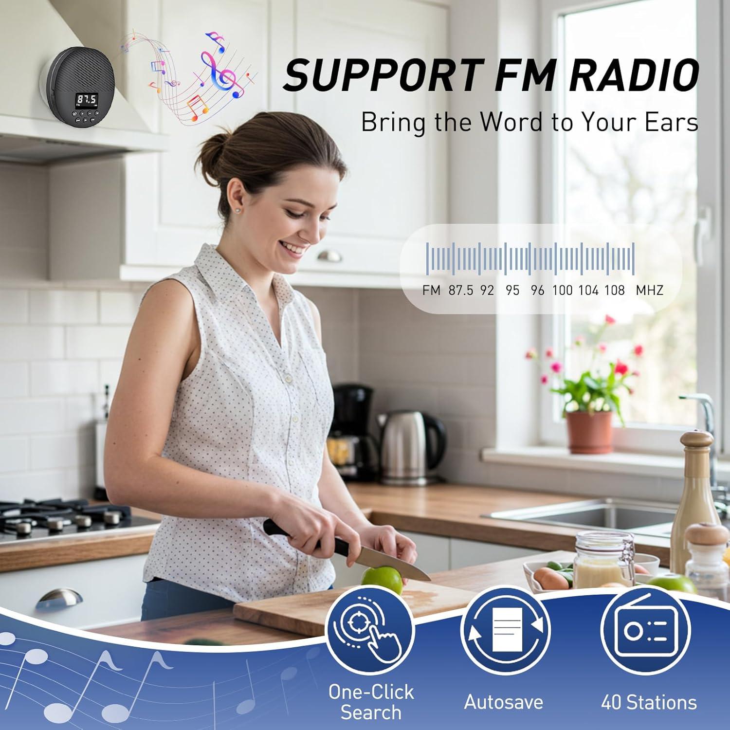 【LCD Display Screen & IPX5 Water Resistant】The LCD Screen can display time anytime. Note: Only support 24H mode time display. Radio and time is alternate display! IPX5 water resistant can survive accidental splashes at home, pools, beaches or anywhere. Lower power voice prompt & 8 mins power off mode enable the battery to last for a long time. No worry of out of power when hiking, camping or at travel.